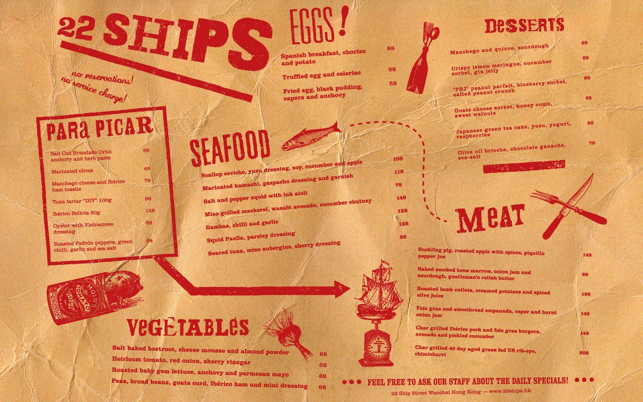 The opening of 22 Ships marks the entry of James Atherton (a protégé of Ferran Adrià and Gordon Ramsay) into the Hong Kong dining scene, adding to his burgeoning presence in other major Asian metropolises, with several recent restaurant openings in Singapore and Shanghai, and to his celebrated flagship London restaurant- Pollen Street Social. As Culinary Director at 22 Ships, Atherton worked with his Executive Chef, Matt Bishop, to craft a concise menu featuring a modern creative tapas cuisine, grounded in the traditional Spanish style tapas, but overlaid with a contemporary British culinary influence.