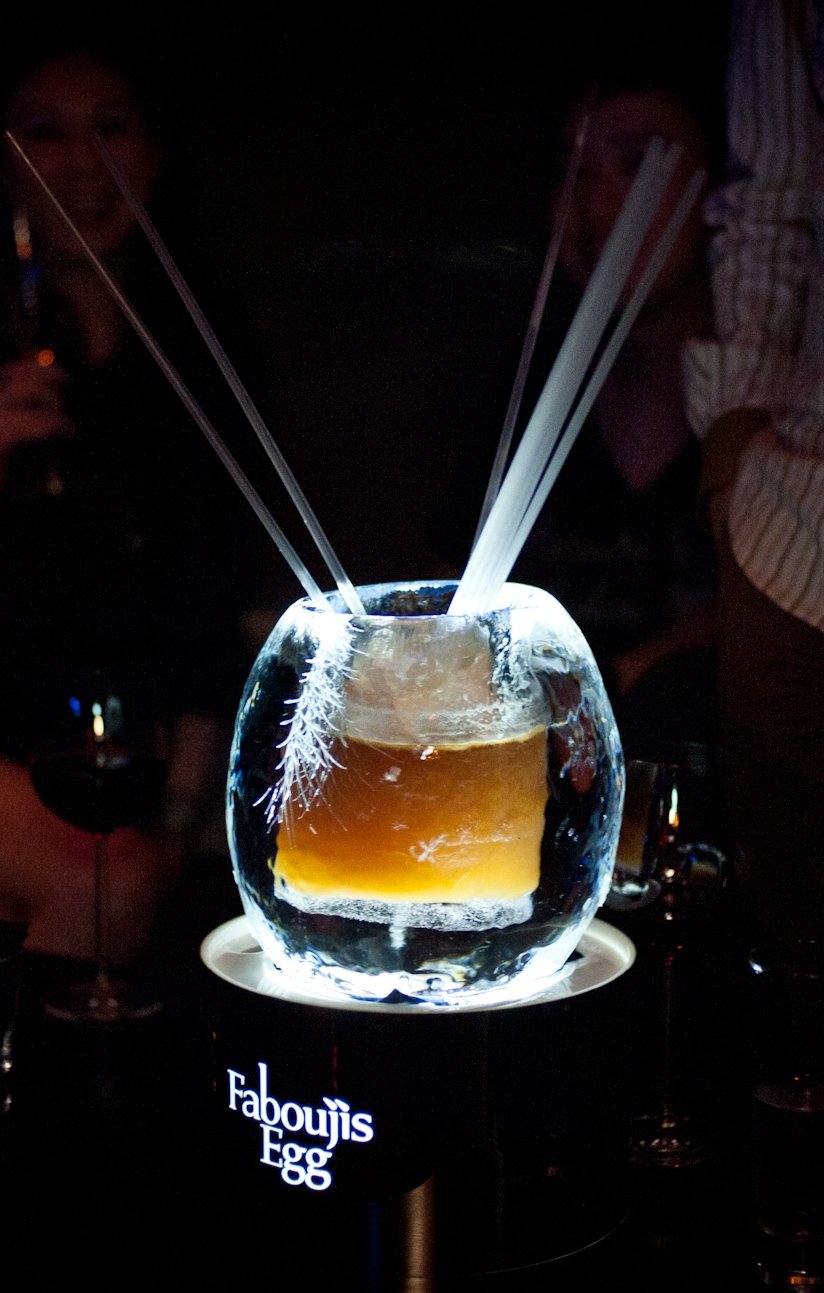 Exclusive to Boujis are the Faboujis Eggs– large egg-shaped ice sculptures filled with signature shots and topped with champagne. Two options are served- London’s Crack Baby– with Chase Vodka, Veuve Clicquot Champagne, raspberry, passionfruit; and The Hong Kong Hustler– Havana Club Rum, agave, Veuve Clicquot Champagne, lychee , apple, lemon.