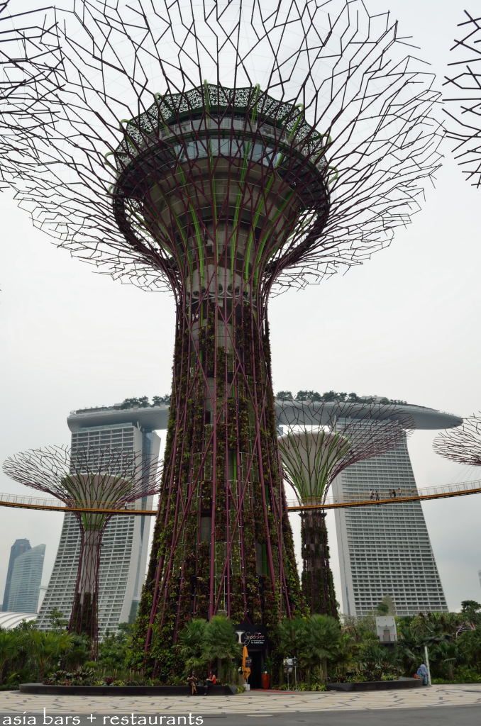 The Gardens by the Bay features clusters of super-sized “trees”- connected by an elevated walkway. SuperTree by IndoChine sits atop the largest “tree” in the SuperTree Grove- and is the only “SuperTree” with dining and bar facilities.