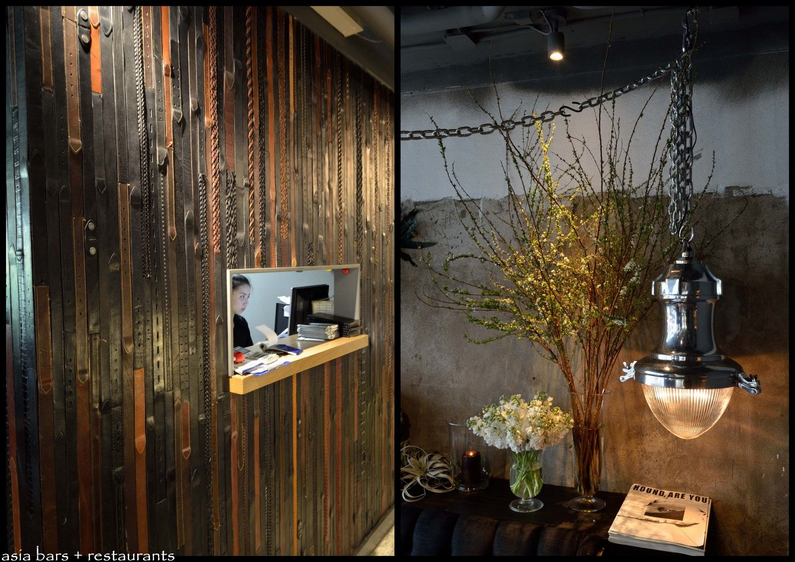 (L) Wall section covered with individual leather belts- reminders of the fashion DNA of Greyhound