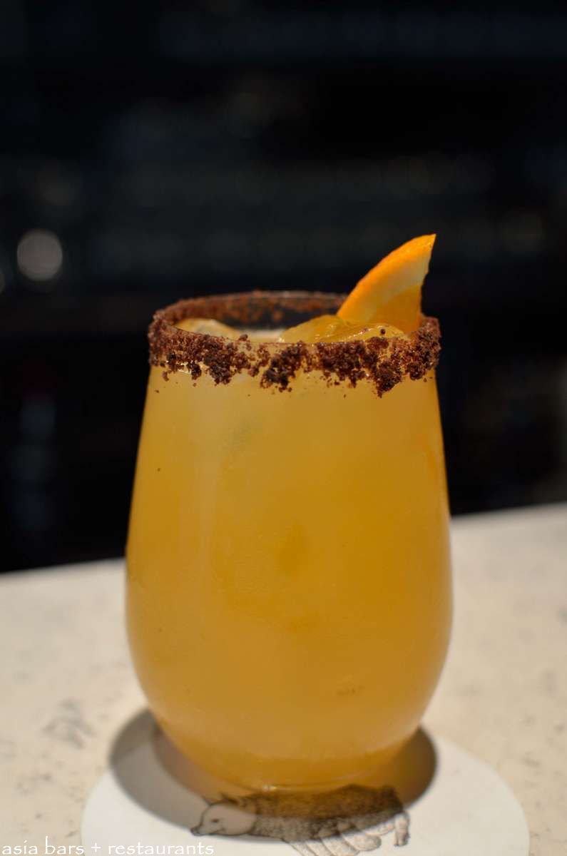 Madam Margarita – house infused chili tequila, aged tequila lime juice, Cointreau, orange juice, rimmed with chocolate soil.