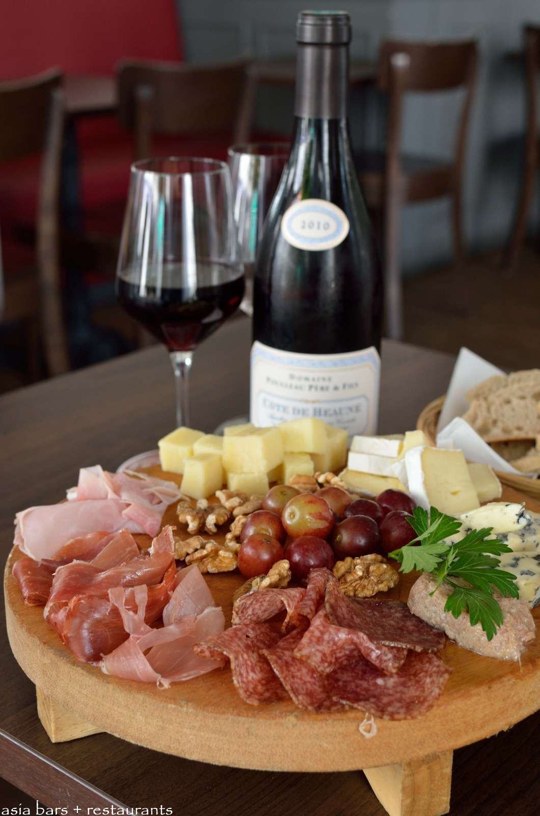 A compact menu of classic French bistro dishes provide a palatable affinity with the wines. Prepared in the kitchen at Ô Batignolles by the in-house French chef, the food features good, honest renditions of the typical Parisian bistro fare- including platters of cheeses and charcuterie (Les Planchettes) for sharing; salads such as La Salad Cesar and La Parisienne; and dishes like Croque Monsier; Le French Burger; and Suprême de poulet. Classic desserts include Crème Brulée and Crumble poire-chocolat. A traditional Parisian Brunch Menu is popular on the weekends- with a choice from an a la carte menu, or Set options- Brunch Royale, which includes a glass of champagne, or Brunch Traditional Parisiene.