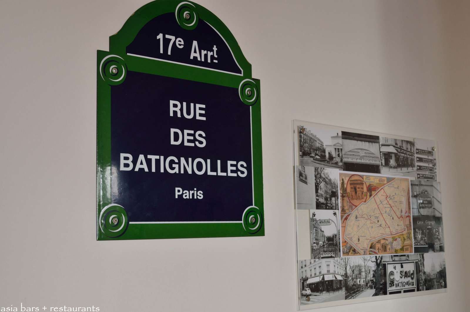 The bistro takes its name after a French village- Batignolles, that has since 1860 been incorporated as the 17th district of Paris. A collage of vintage photos showcase the heritage of the area- famous for its bistros and street cafes.