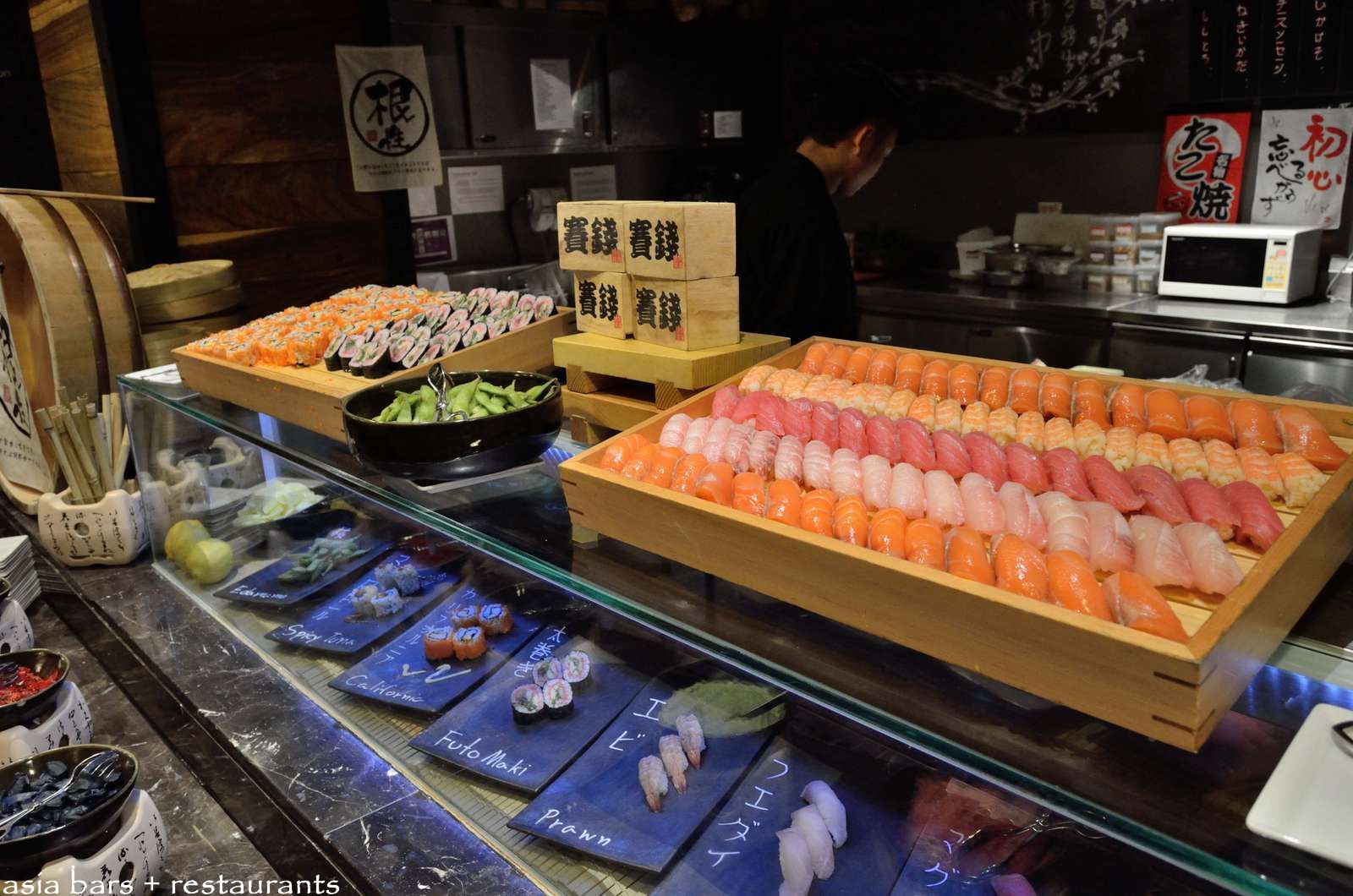 “SOSHI” counter- offers an impressive selection of freshly prepared sushi.