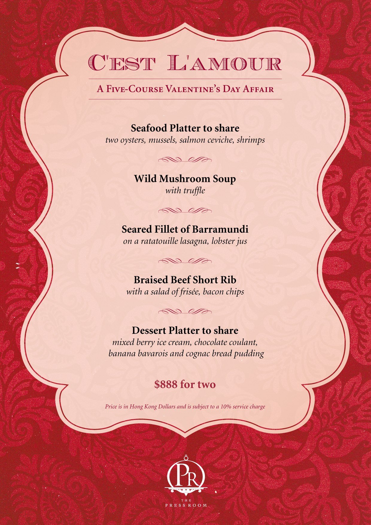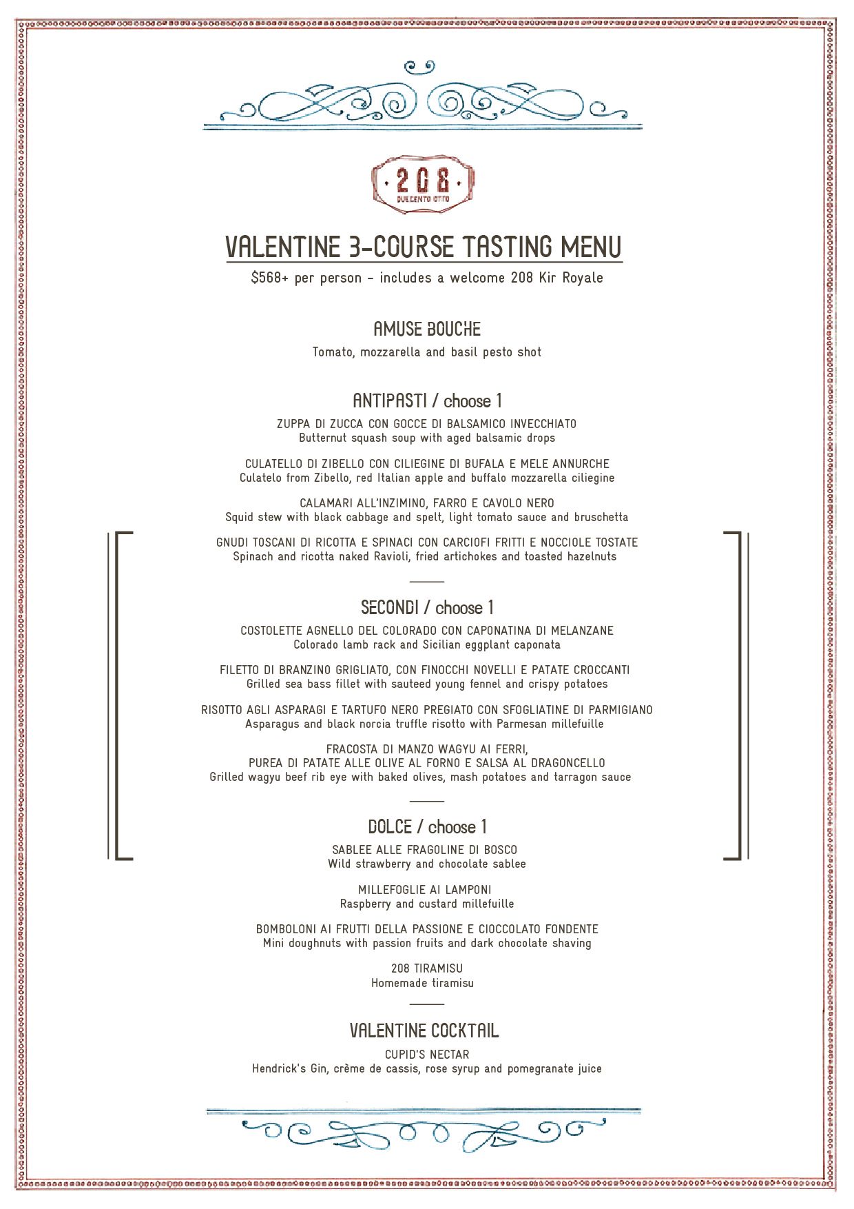 208 Duecento Otto Valentine’s Day Menu