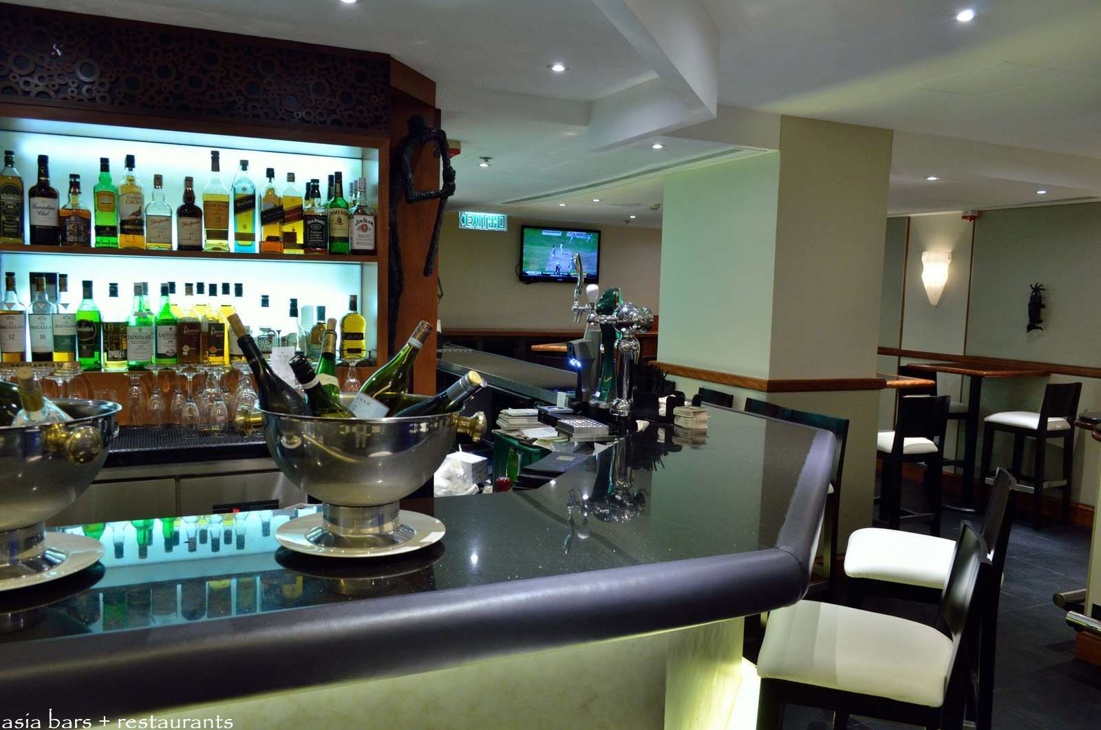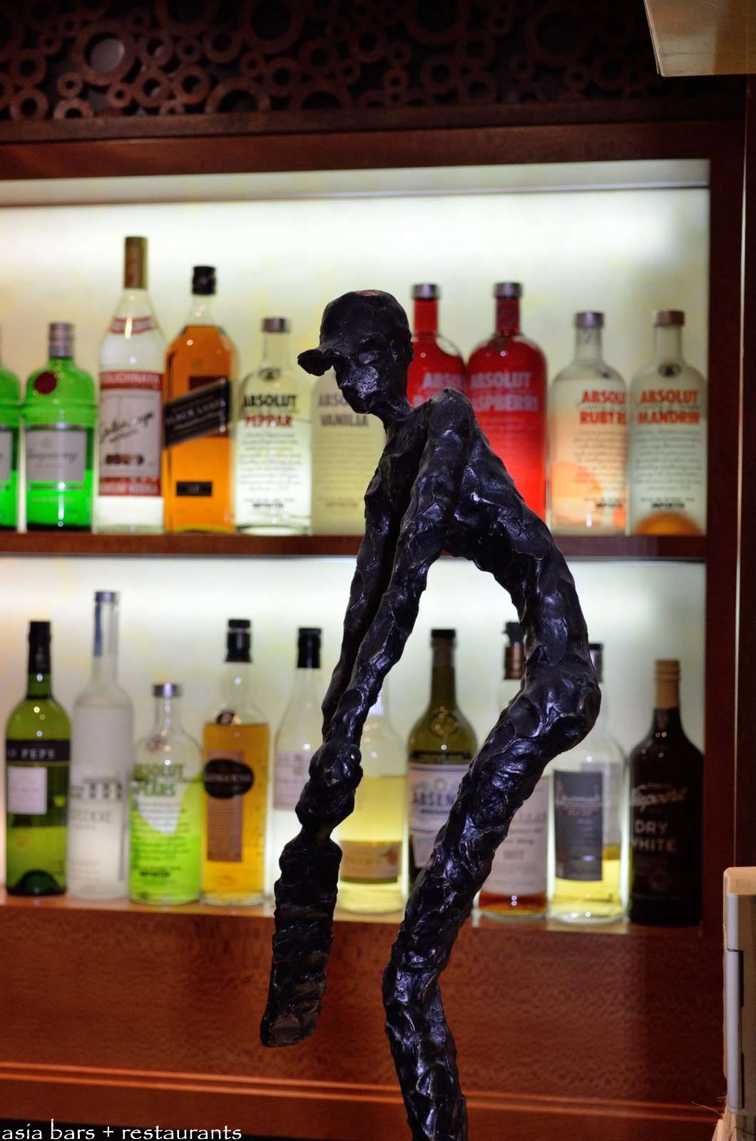 Cricket themed sculpture on the bar references the Hong Kong Cricket Club connection