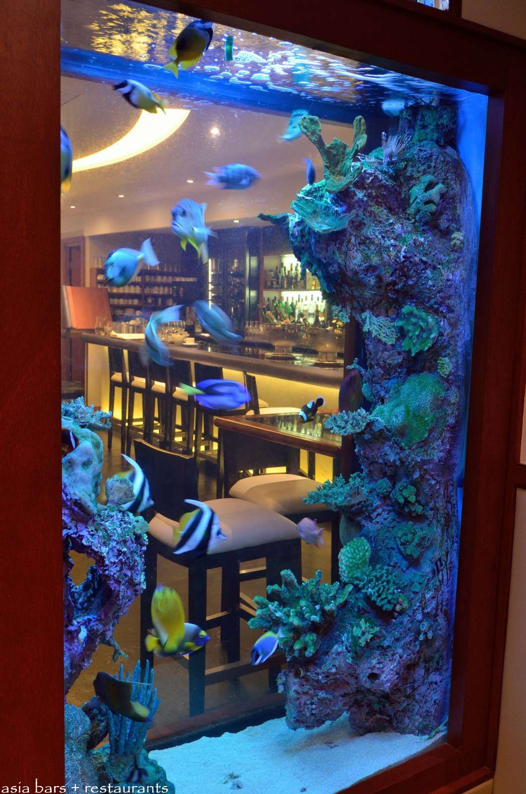 See-through tropical aquarium – looking inside the restaurant from the entrance lobby.
