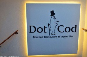 DotCod offers an exceptional variety of fresh seafood on the seasonally updated a la carte menu- ranging from shellfish such as oysters (usually 6 – 8 varieties), mussels, lobsters and crabs; and fishes sourced globally- including Sea Bass, Cod, Australian Salt Water Barrumundi, Trout, Salmon. “Catch of the Day” specials are cooked to request- and typically include fish such as Dover Sole (UK), Turbot (UK), Red Emperor (Australia), Pink Snapper (Australia), Rainbow Trout ( Australia) and Yellow Tail King Fish (Australia). The menu also features seafood platters for sharing, salads, starters, and a concise selection of fine meats for non-fish palates. One of the most popular dishes at DotCod is their version of fish & chips- listed as “Simply Dot Cod”. Fresh Cod fillets are dipped in beer batter and deep fried in omega 9 oil- using the same recipe for the past 13 years- and served with chips and mushy peas.