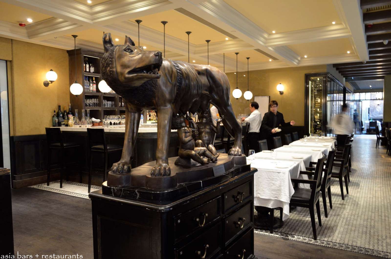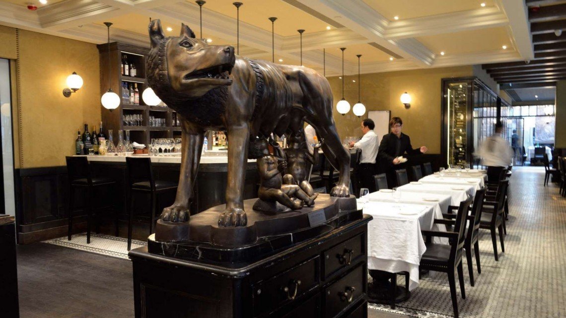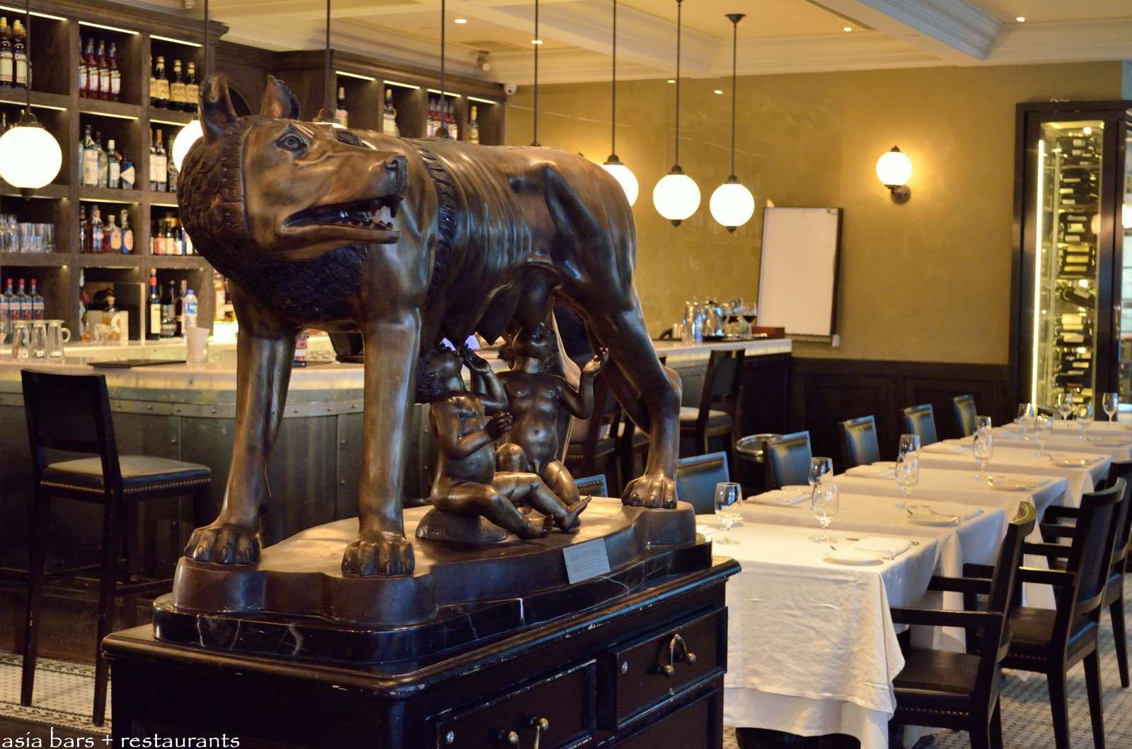 A life-size bronze sculpture of the legendary she-wolf- “La Lupa”- suckling the twin infants- Romulus and Remus- stands prominently in the centre of the main dining room.