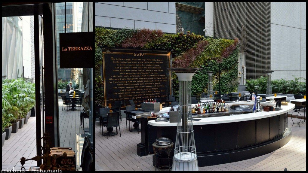 In addition to its classy rustic chic interior dining space, LUPA in Hong Kong also boasts a spacious outdoor terrace- named The Terrace at Lupa– where guests have the option of dining outdoors from a more casual menu- or just relaxing with evening drinks on the comfortable sofa settings or high tables.