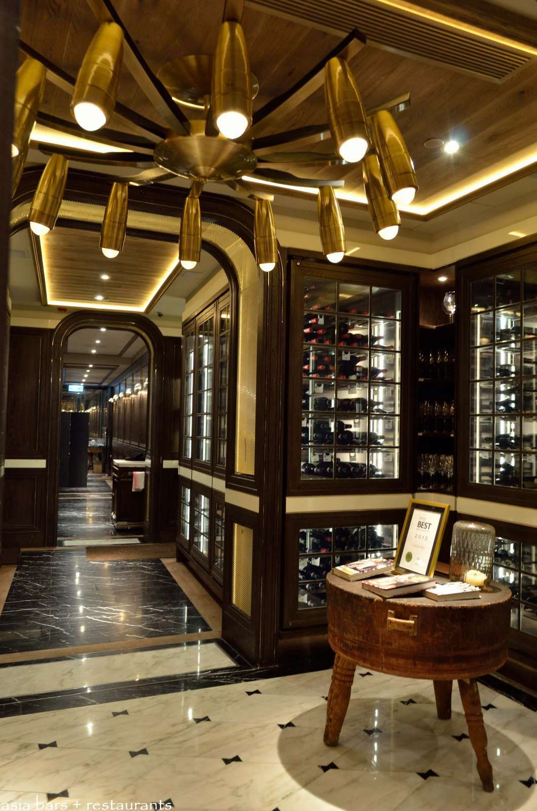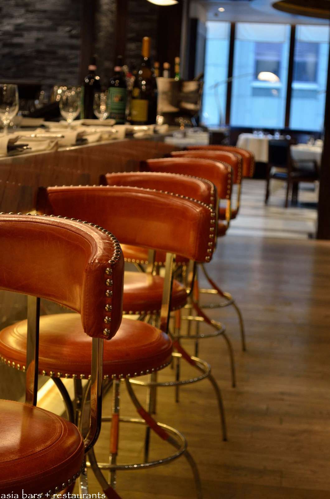 Occupying a spacious 5,000 square feet on the 5th floor of the LHT Tower on Queen’s Road, Carnivore comprises several inter-connected dining rooms and a splendid bar room. The boldly original design is the creation of renowned New York design firm AvroKO ( whose notable restaurant projects in Hong Kong also includes Lily & Bloom and Socialito). Referencing an era of classic luxury European auto racing, the decor harmoniously blends polished nickel metal grilles utilised as wall panels, luxuriant quilted leather upholstery, and satin metallic, custom-made light fixtures, with the refined elegance of polished white marble inlay flooring and dark timber furnishings and ceilings. A series of private dining rooms abut the main dining room- with a combined seating capacity across all the rooms of just 150 patrons ensuring a sense of comfortable spaciousness.