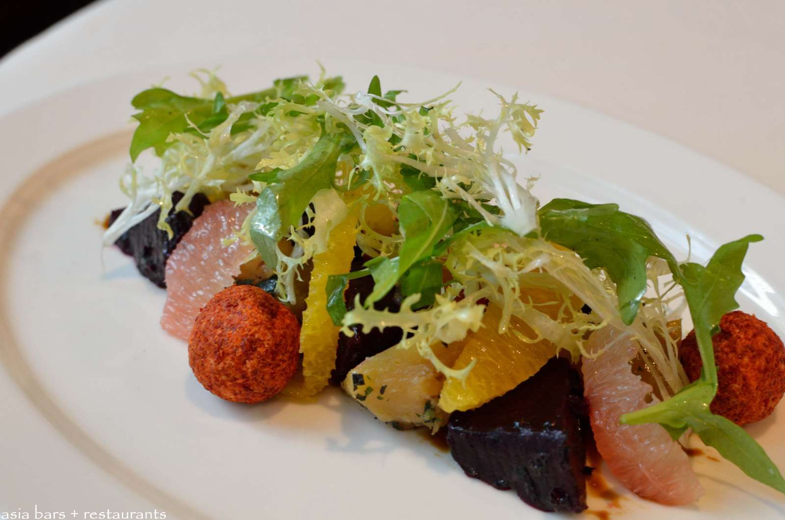 Beet Salad with Goat Cheese- Roasted Multi-Colored Beets with Pistachios and Citrus. Cold Appetizers selection.
