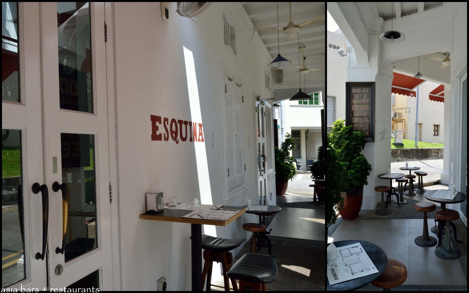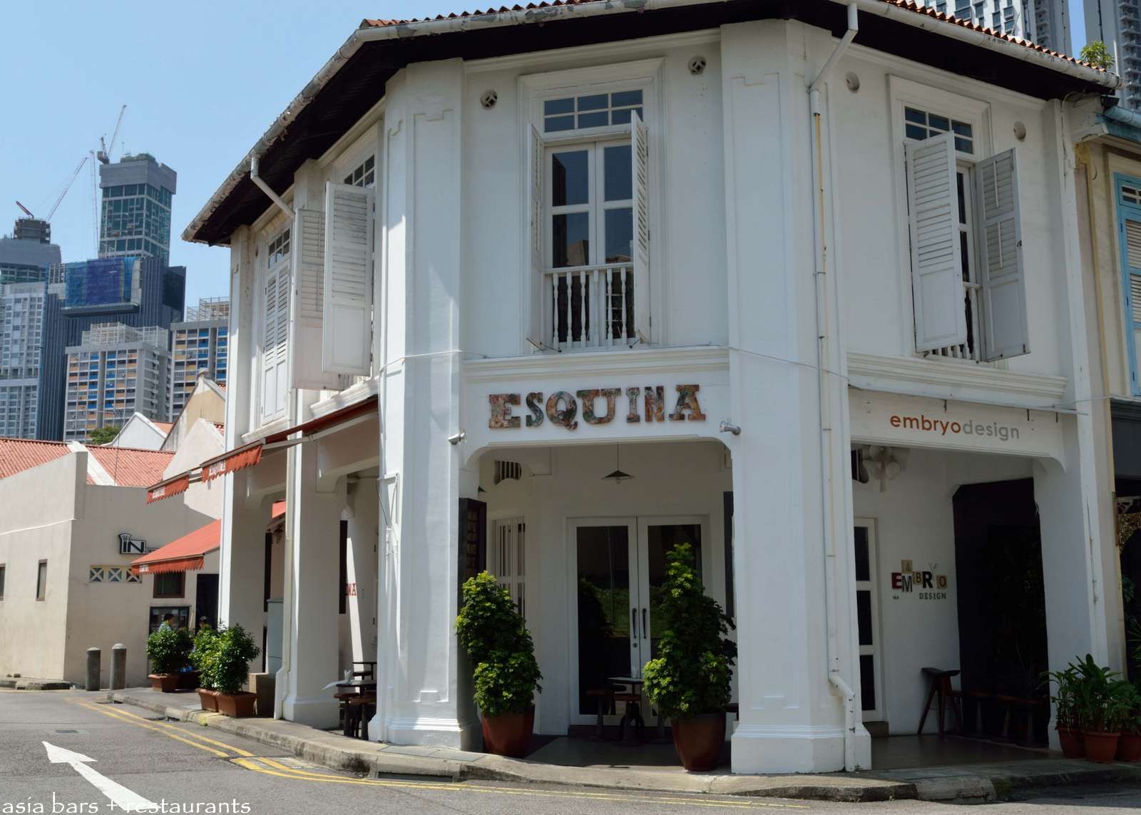 An intimately proportioned space, strong on character, with seating for only 19 diners (plus some standing room inside and outside), and a No Reservations and No Service charge, Esquina (Spanish for “the corner”) deftly channels the charming neighborhood / social dining style of a typical Spanish tapas bar. Located within a restored colonial era shophouse in a newly fashionable area of the Chinatown precinct of Singapore, Esquina has attained a considerable popularity within the Singaporean restaurant scene, and has been the recipient of local and international critical acclaim. The relaxed and engaging attitude of both the serving staff and culinary team encourages a vibrant interaction with diners, and offers an enticingly sociable format of dining, where people just drop in for a quick meal and drink before moving on elsewhere. Just as in Spain.