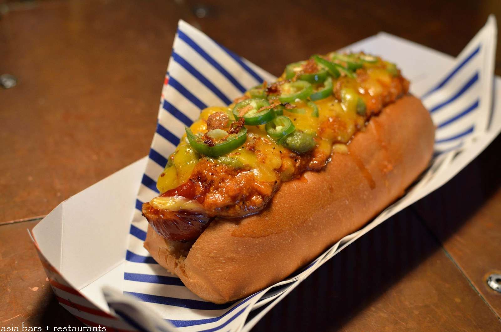 Jason’s Very Hot Dog- with Chorizo & Avocado, Green Chilli & Cheese. (S$15)