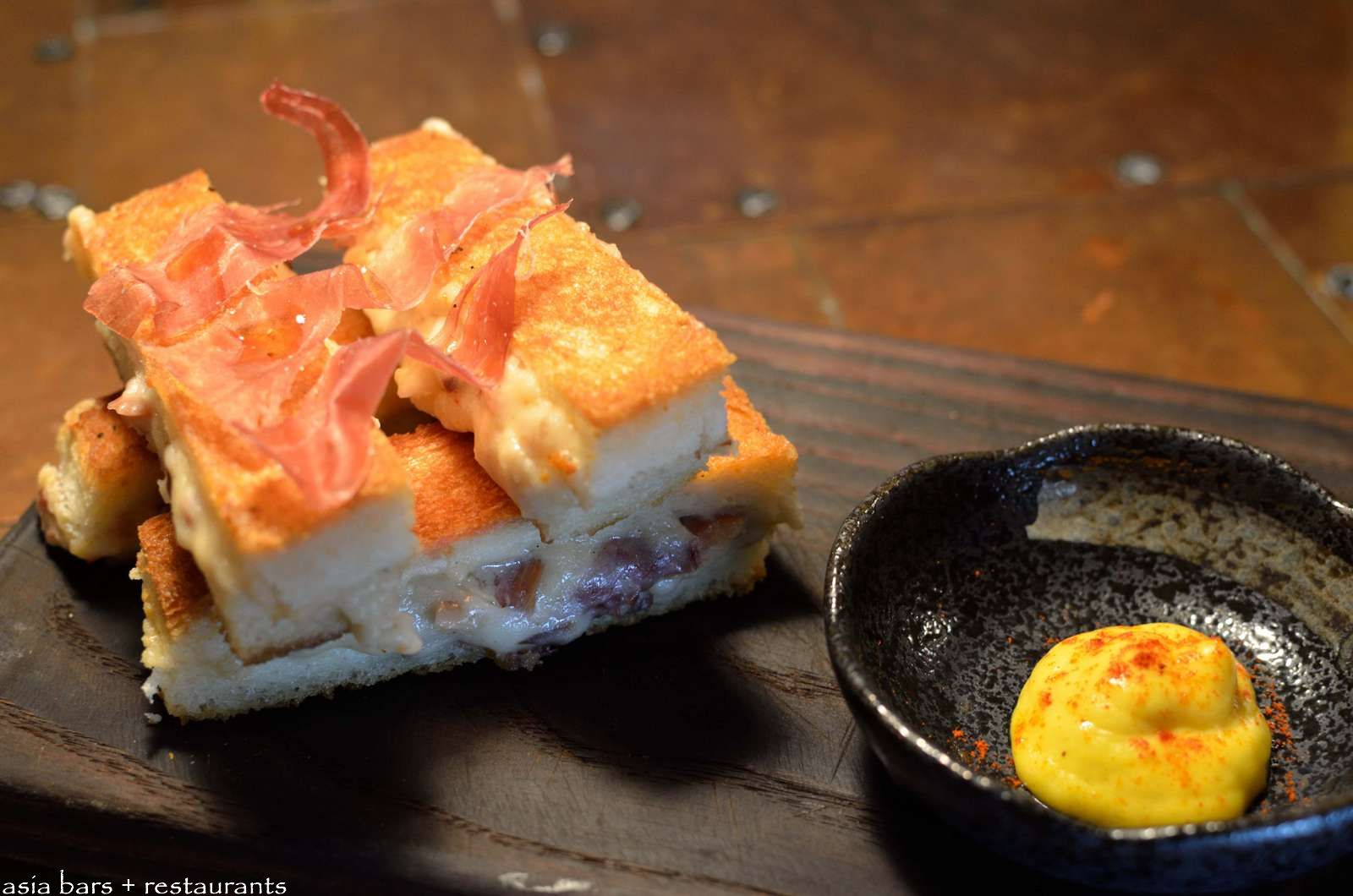 Toasted Serrano Ham & Manchego Cheese Toasties, Saffron Aioli. (S$17)