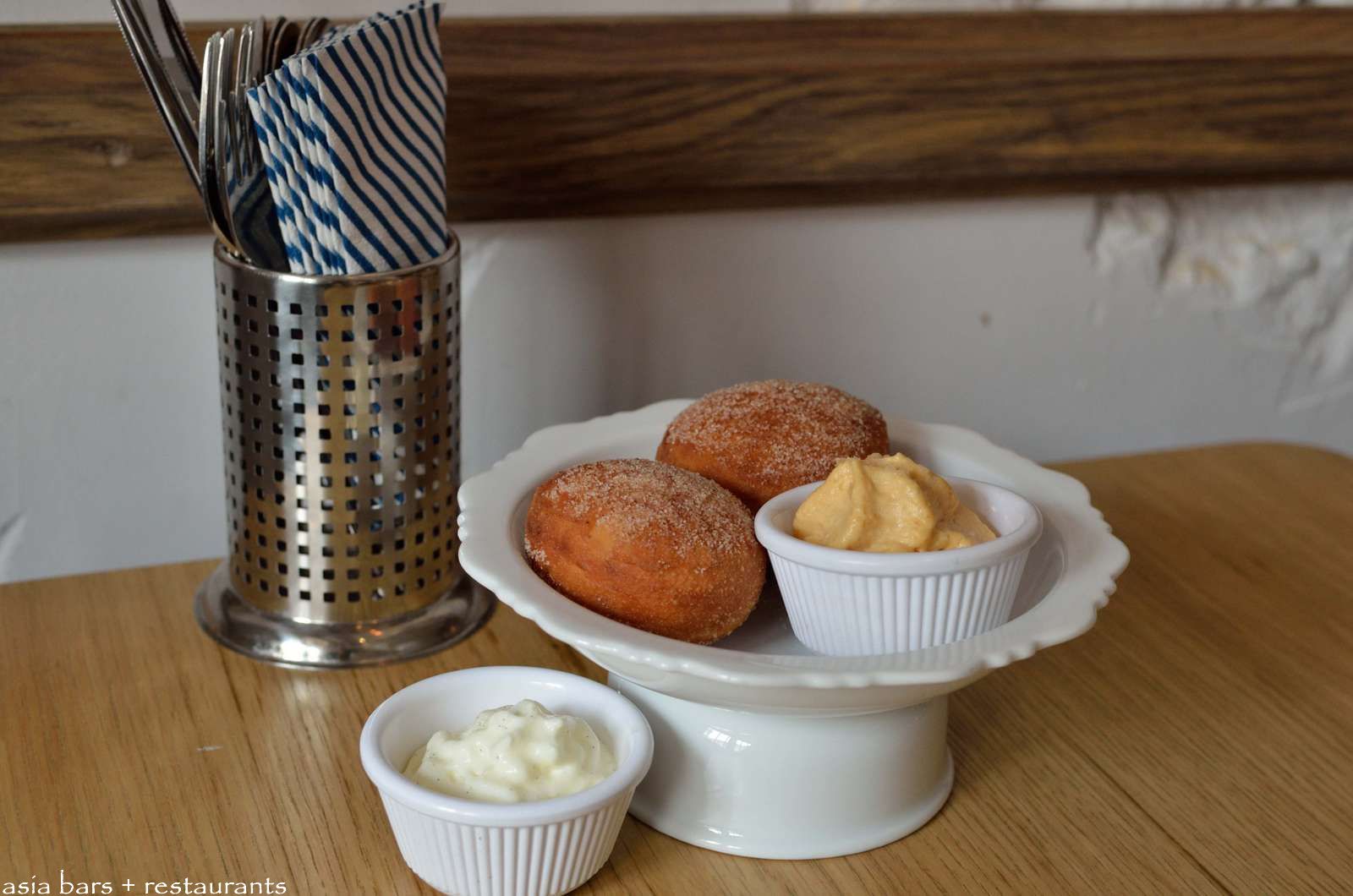 Doughnuts with Cinnamon- with vanilla / caramel chantilly. (S$10)
