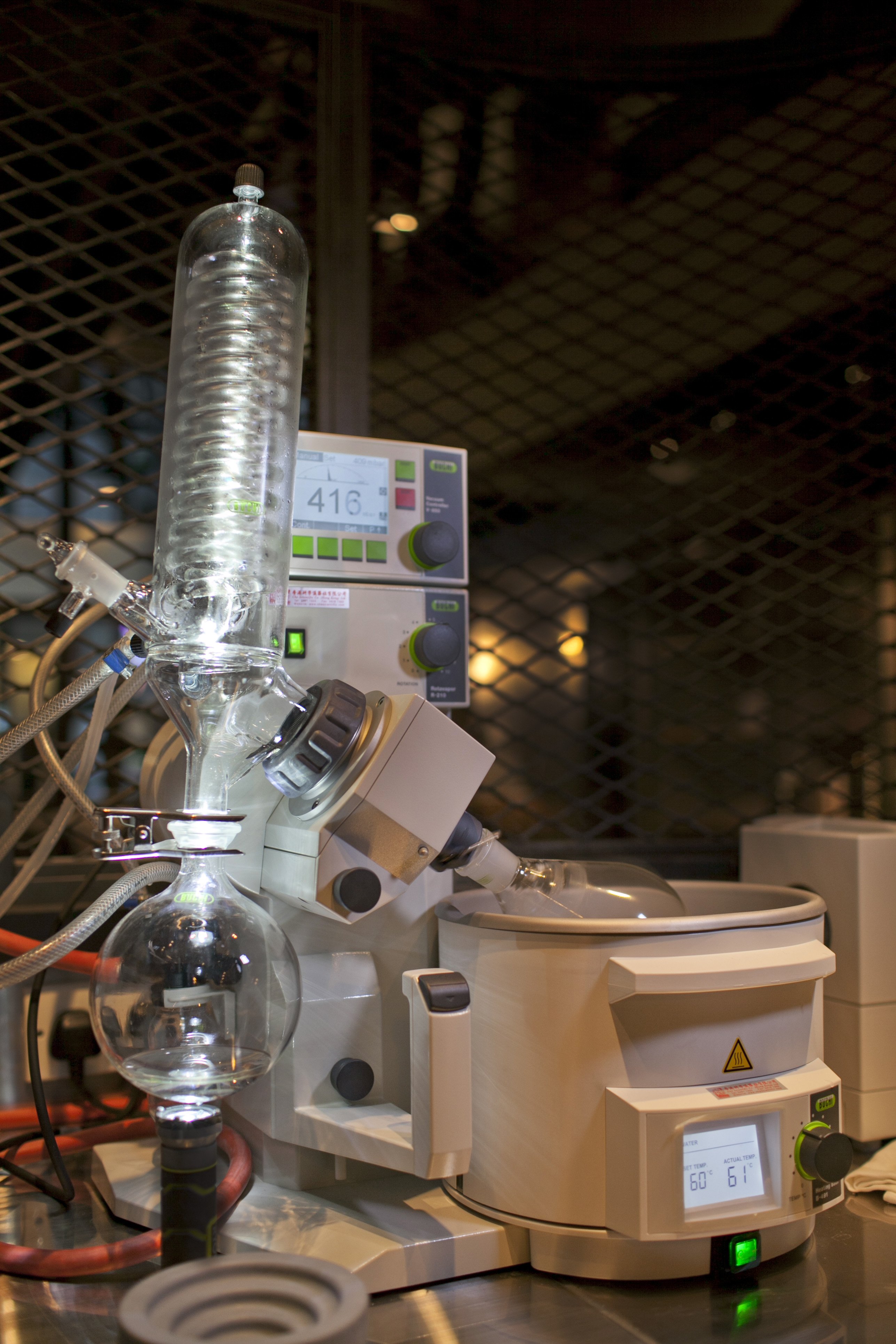 techniques first employed at the famous El Bulli restaurant to deconstruct the elements of a dish to create a new style of cuisine, the cocktails at Quinary also undergo an innovative process of both deconstruction and re-interpretation- with the addition of carefully selected new ingredients to harmoniously blend with the original cocktail recipe to create the multi-sensory experience. At the front corner section of the bar, the modern laboratory equipment is showcased behind a black mesh industrial-style screen. Impressive equipment includes the digitally controlled rotary evaporator that infuses and redistills the base spirits, and a centrifuge for combining ingredients and flavor combinations. Standout signature cocktails on the Quinary drinks list include- OOLONG TEA COLLINS– slow cooked home made Oolong tea cordial with Absolut Vodka and soda on rocks; EARL GREY CAVIAR MARTINI- mixture of sweet & sour, Cointreau, Absolut vodka, elderflower syrup topped with earl grey caviar and air; and QUINARY BLOODY MARY- re-distilled Absolut wasabi vodka using the rotary evaporator, home-made bloody mary mix, tomato juice, spicy with a kick.