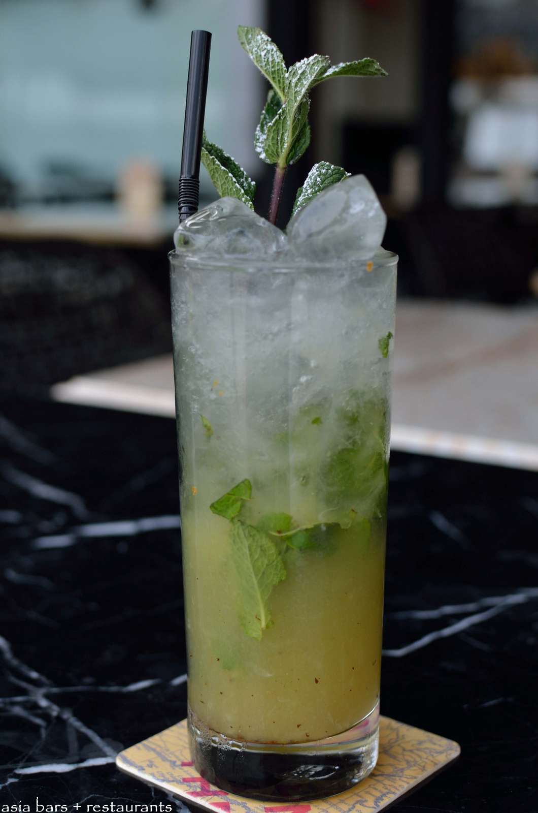 Mojito- the original- Bacardi, mint, lime, sugar, fruit. The Pelican Bar serves 10 varieties of Mojito including passion fruit, lychee, pineapple, peach, blood orange, raspberry and kiwi.