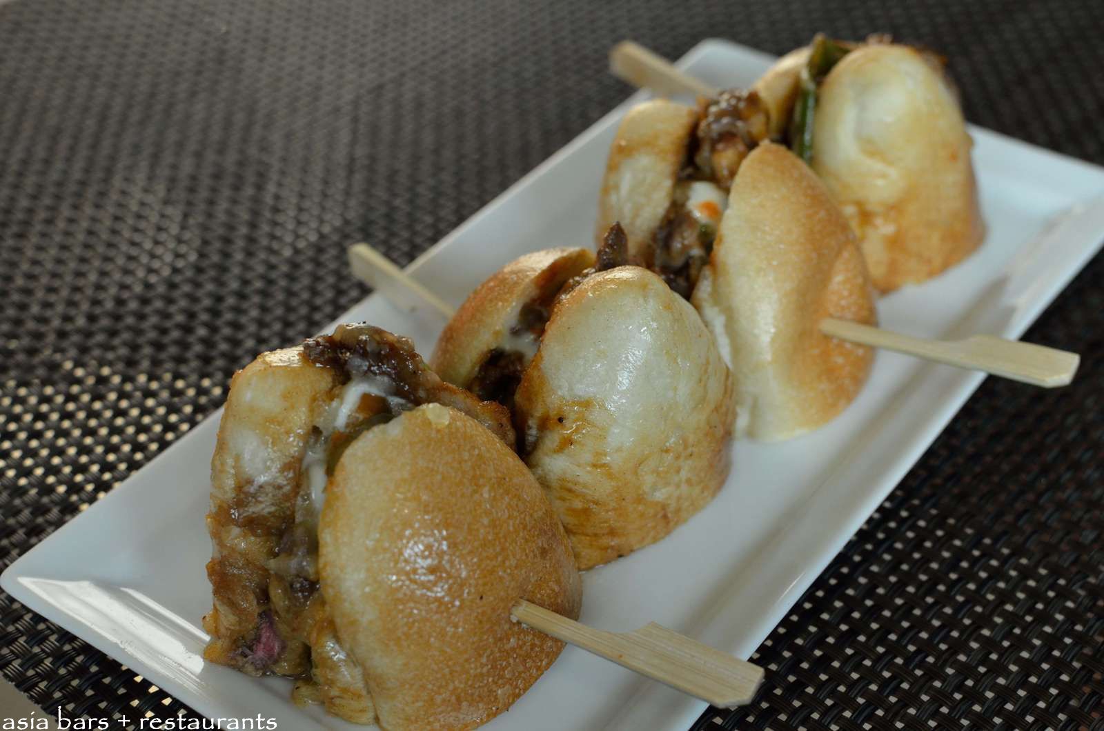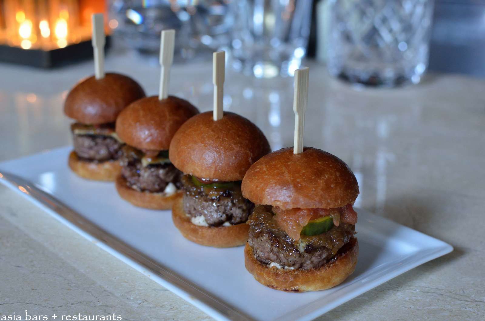 Mini Kobe Beef Sliders- Brioche buns, Sweet pickles, Kobe beef .