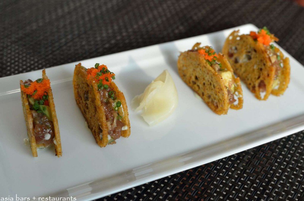 Tuna Tartare Sandwiches- Wasabi, Japanese cucumber, tuna, togarashi “toast” .