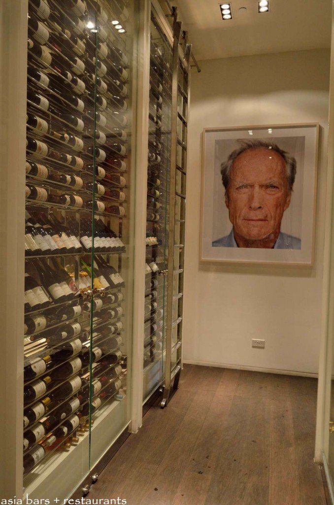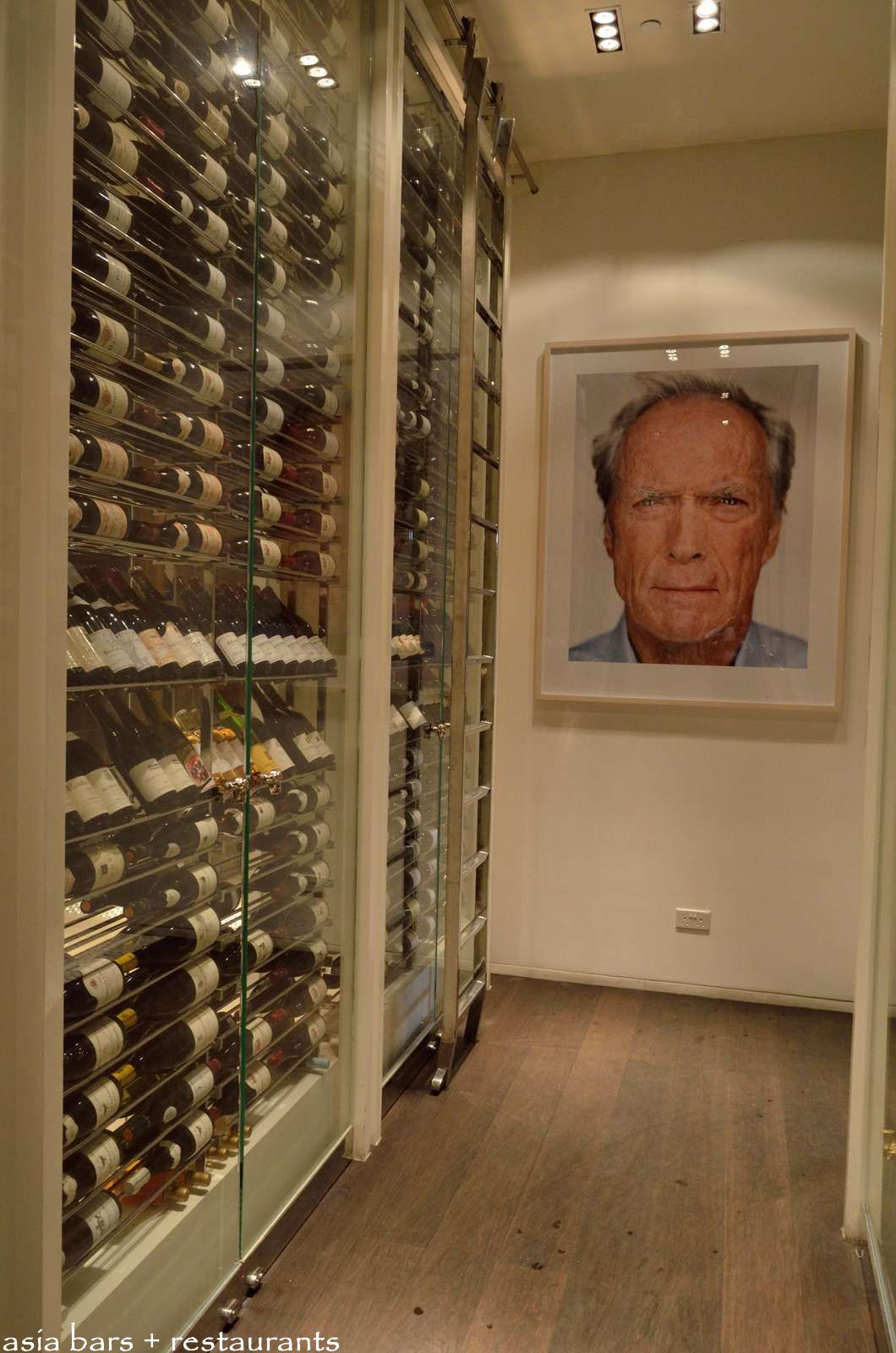 Internal passageways are flanked on either side by full height glass wine displays that showcase the extensive 700+ label wine list. Framed portraits of Hollywood legends are featured on the walls throughout CUT.