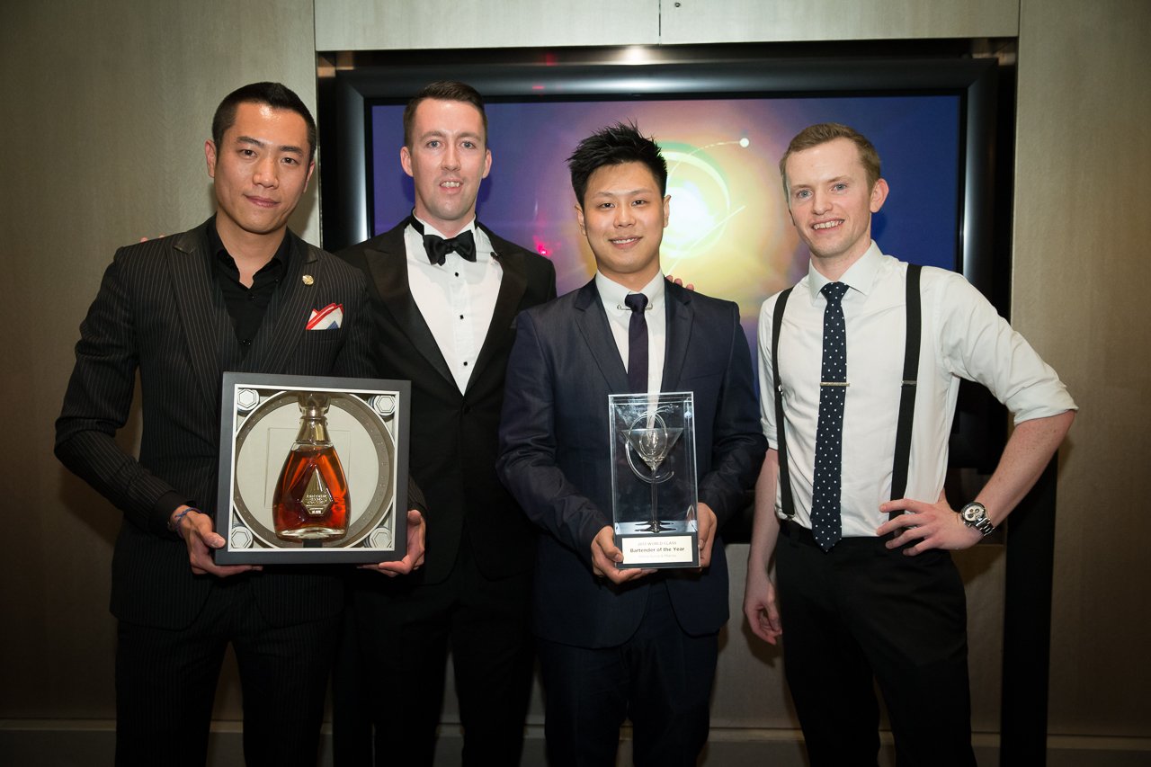 (L- R) Kae Yin (Asia Pacific’s World Class Bartender of the Year 2012), Diageo Brand Ambassador Hong Kong Adam Brewer, Ricky Liau, and Tom Wood (World Class Hong Kong Bartender of the Year 2012)
