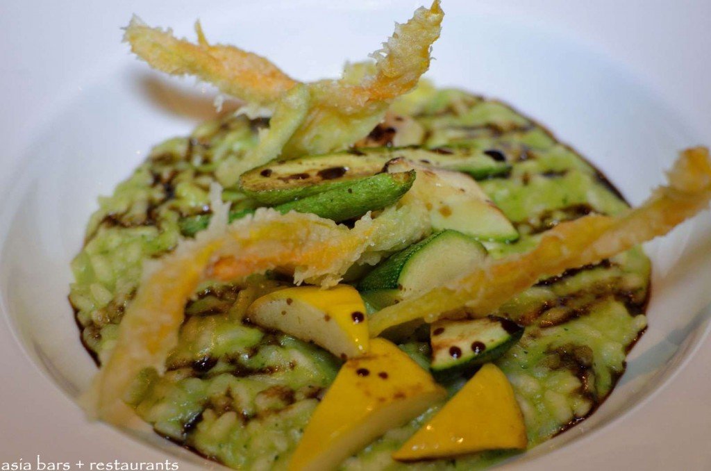 Green Pea Risotto with Zucchin Flower & Parmesan (S$24)
