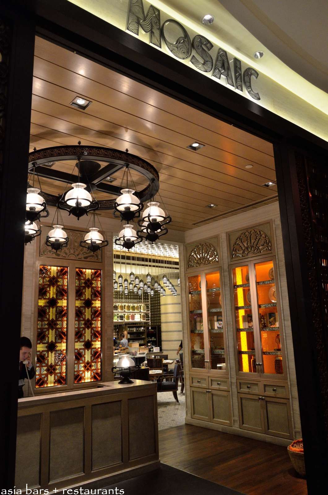 The “upper” section of Mosaic features the live cooking stations on either side and with some table seating in the centre. The panoply of intricately crafted pewter lights suspended from the ceiling references the Peranakan cultural influences on the design.