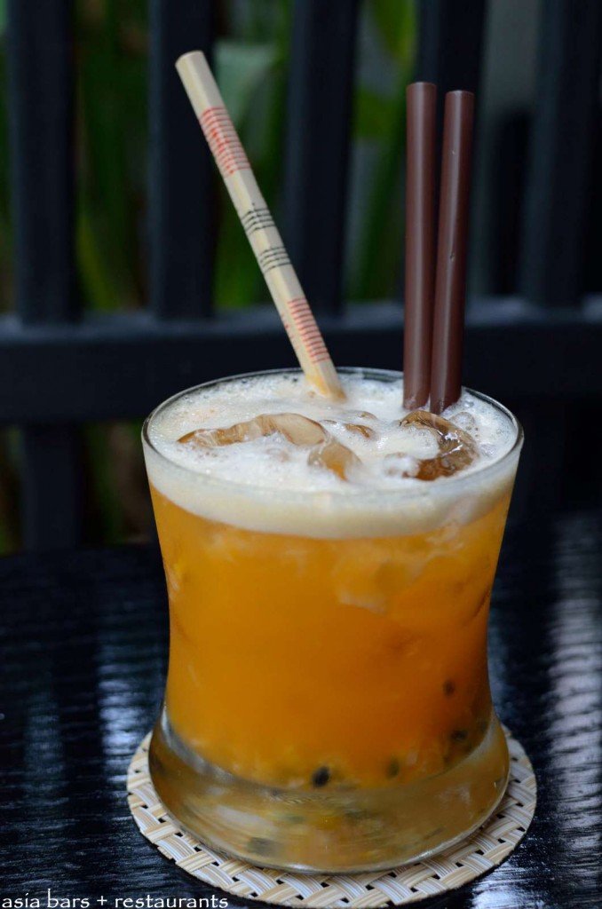 Bangkok Mule : Citrus infused vodka and french lychee liqueur, locally grown passion fruit, lychee, lime, shaken over ice