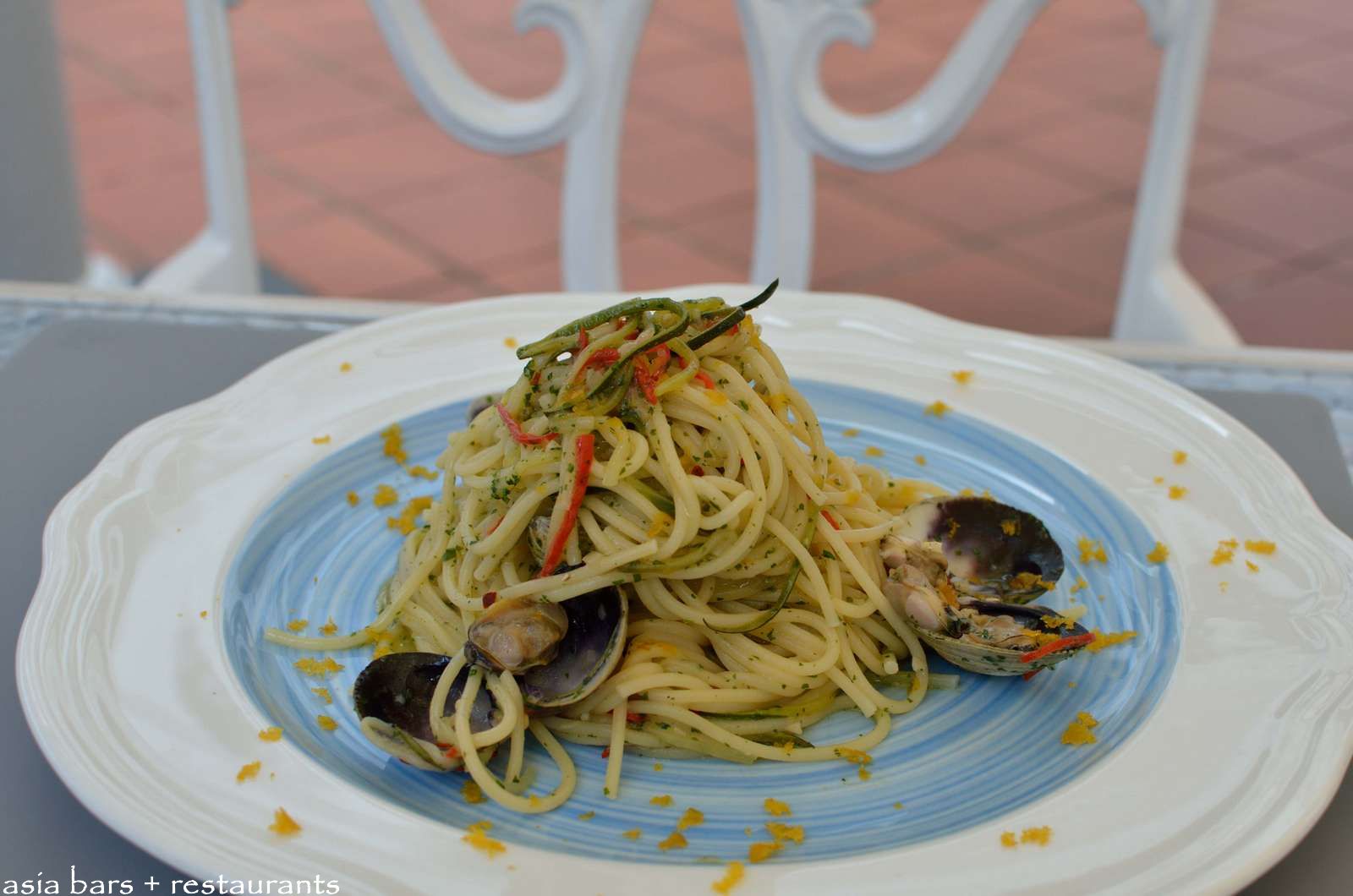 SPAGHETTI CON VONGOLE ZUCCHINI E BOTARGA– Spaghetti, Clams, Zucchini, Bottarga
