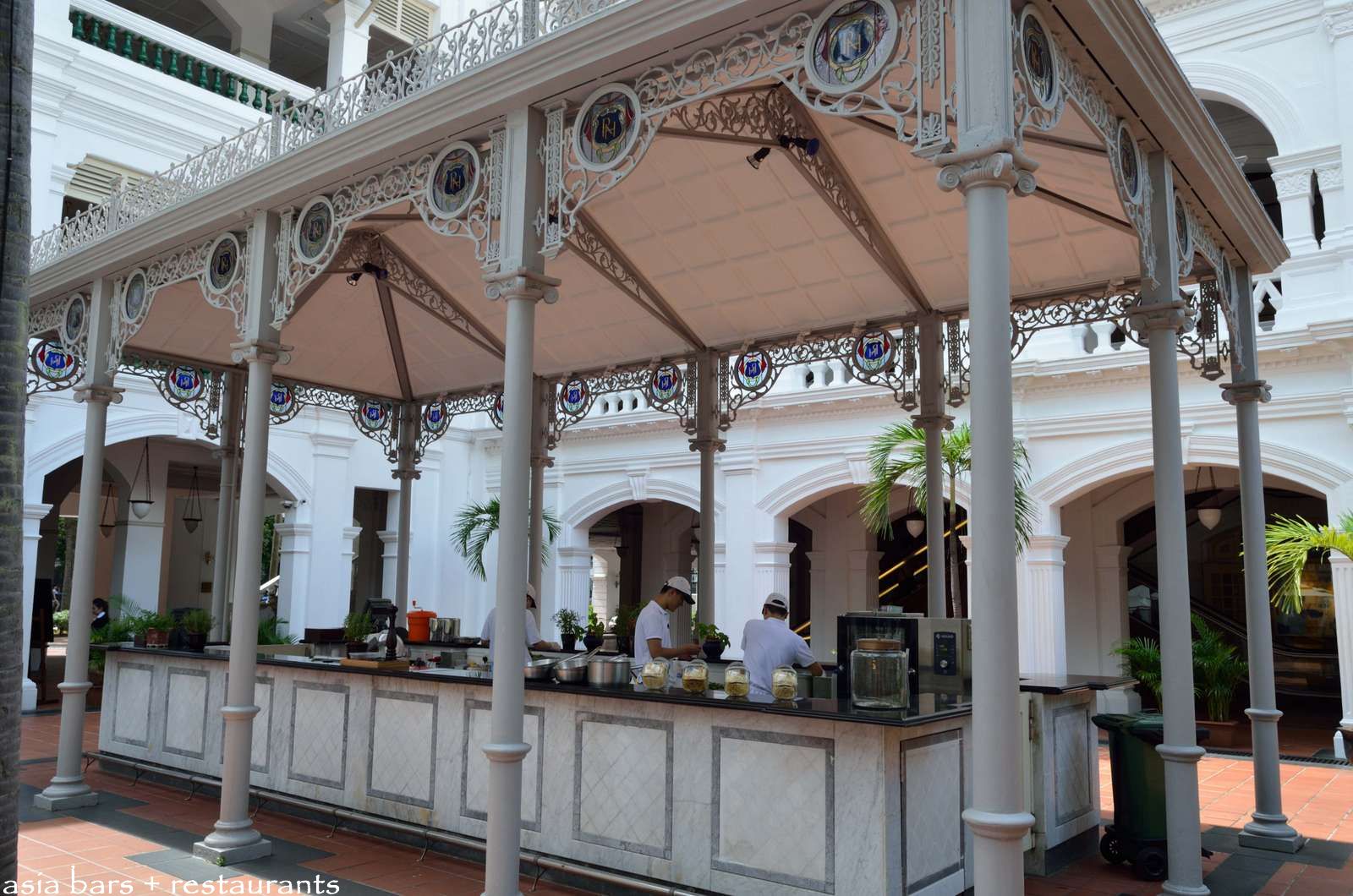 The elegant gazebo housing the Raffles Courtyard kitchen.