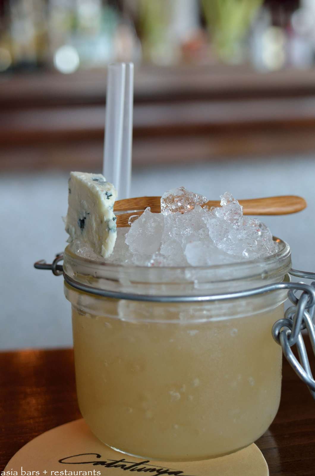 Lola– Amontillado Sherry, Catalunya Blue cheese syrup. Sweet and nutty with a really strong flavour- recommended especially to sherry lovers.