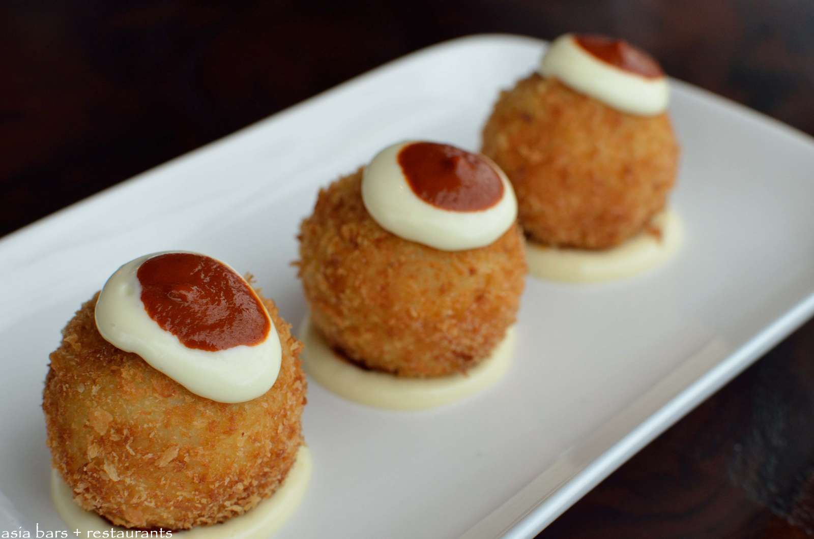 Bombas de la Barceloneta– A Cova Fumada creation- meat & potato concoction with brava sauce.