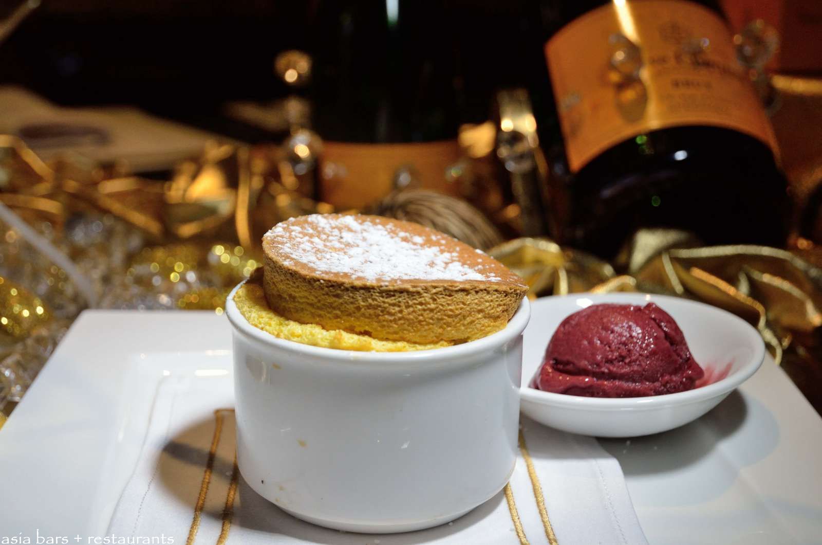 Sunkist Orange & Caramel Soufflé– Gran Marnier & chocolate Jaffa ice cream. Paired with Grand Marnier.