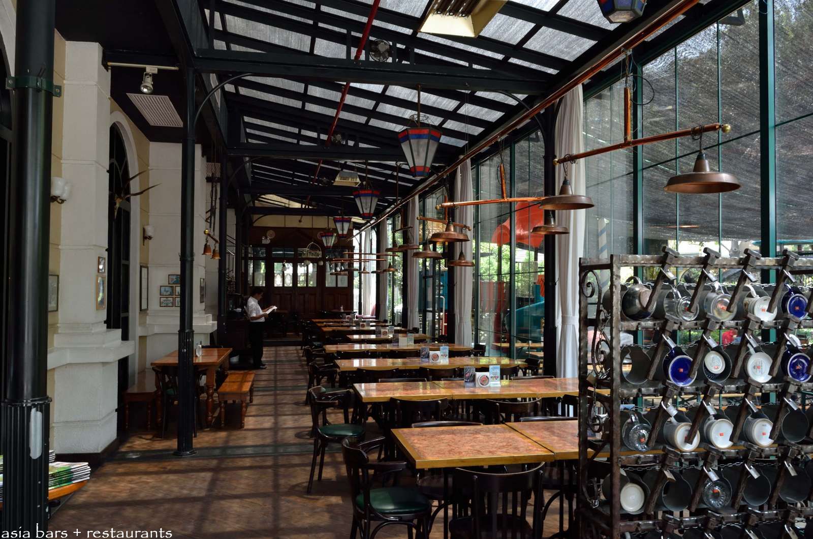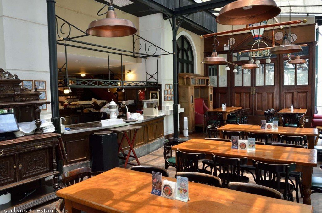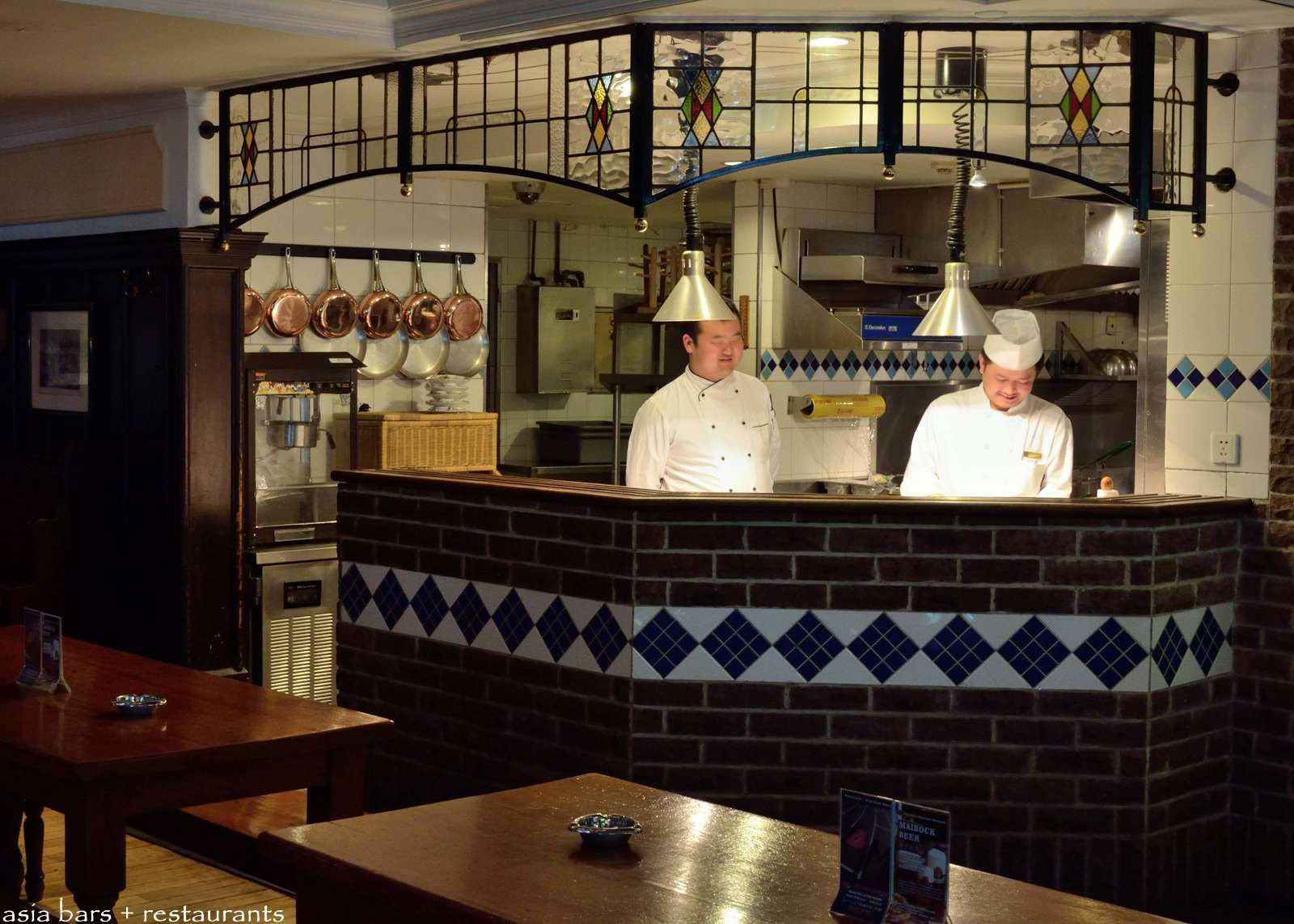 As the flagship Shanghai outlet, the Paulaner Brauhaus @ Fen Yang Road occupies an impressive building in the prestigious French Concession area of central Shanghai. Set well back from the tree-lined road on a large garden site, the original building was completely renovated under the direction of Bavarian design firm to re-create an authentic style Bavarian “brauhaus” style restaurant. A signature design element of all Paulaner Brauhaus’ are the gleaming large cooper kettles that stand behind the copper-covered bar counter and beer fonts. And referencing the traditional Bavarian dining style- seating is mostly at large solid timber tables and bench seats.