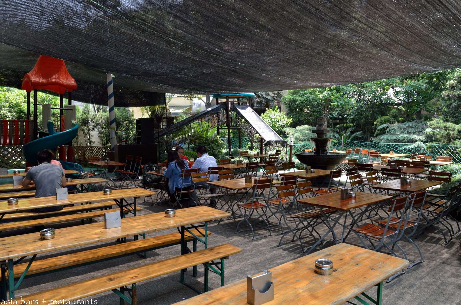 The outdoor beer garden with traditional bench style seating. A signature Paulaner fountain is a feature of the beer garden. Paulaner Brauhaus is “family-friendly”- with a kids playground area particularly popular on the weekends.