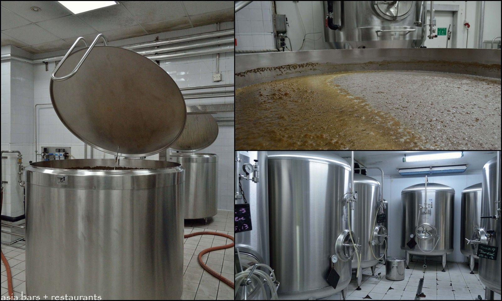 The modern micro-brewery works are located on the first floor- with the large stainless steel fermentation tanks (Left & Top Right) , and a large cold room holding the aging & storage tanks.