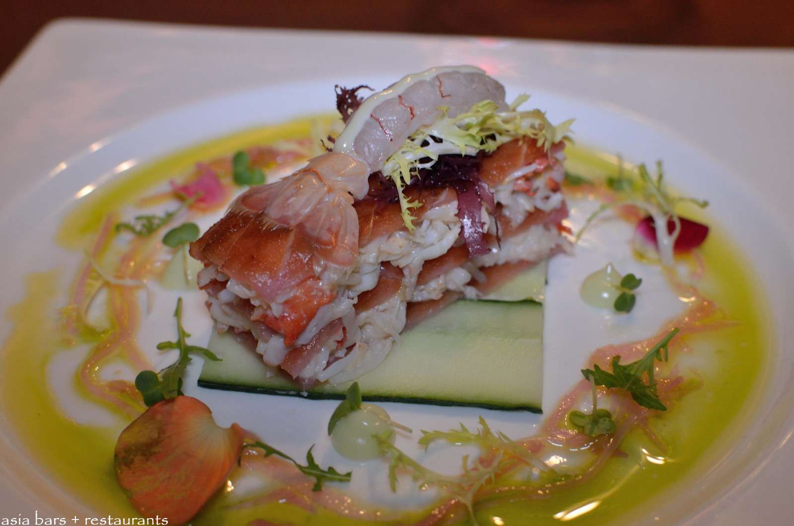 New Zealand Scampi on Tuna & King Crab salad with wasabi mayonnaise