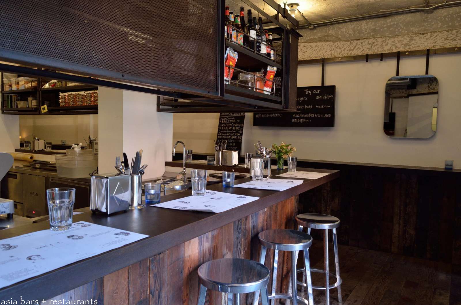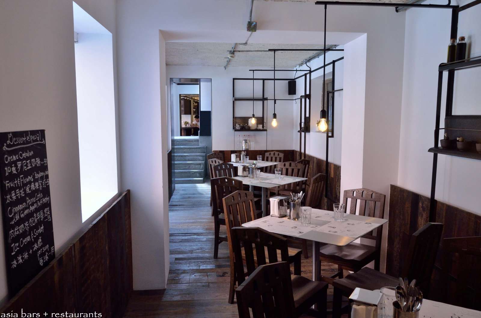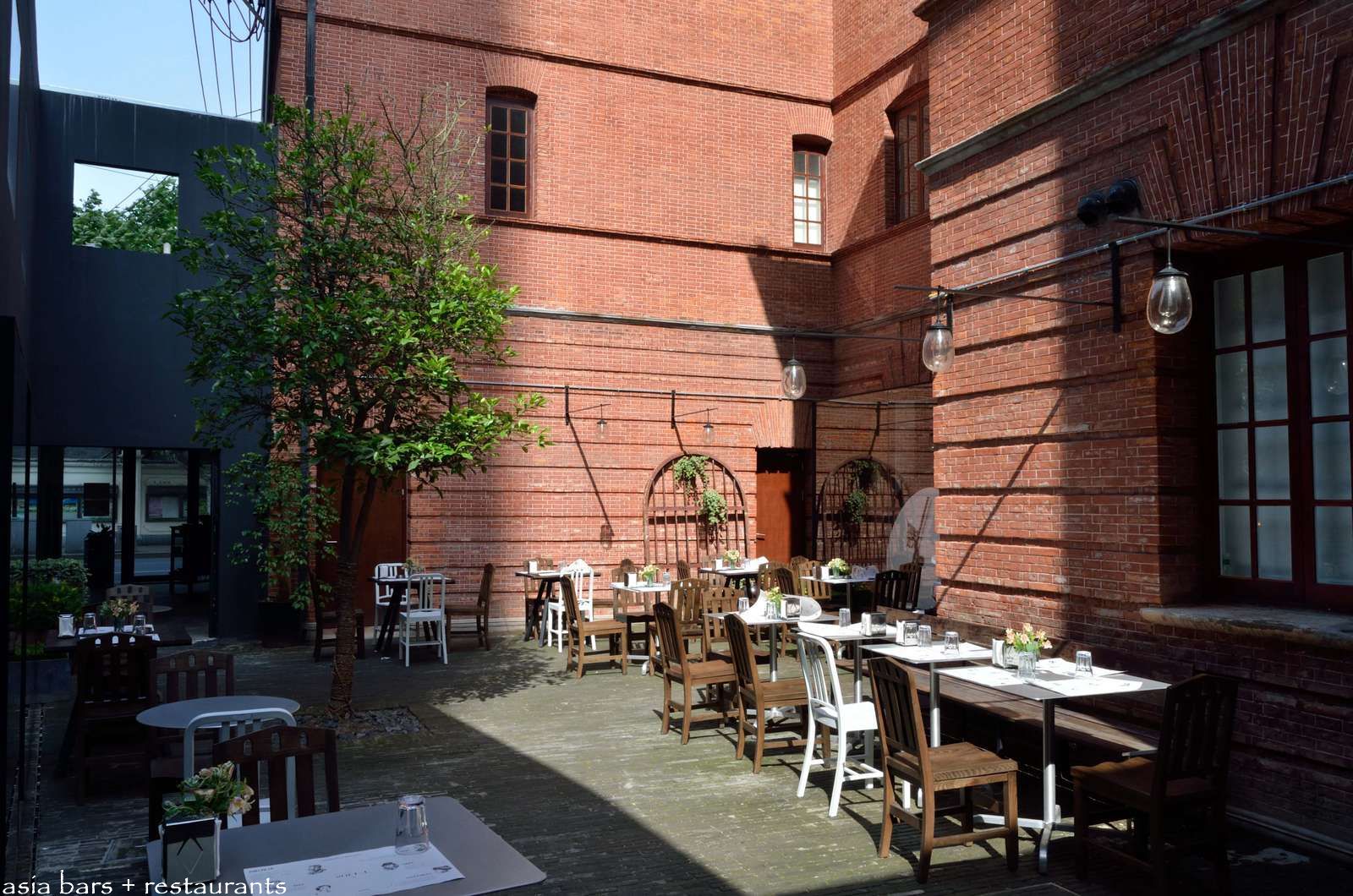 Set within a section of a restored redbrick police station in a leafy city street in central Shanghai, The Commune Social exemplifies an industrial chic design ethos with a minimalist decor of whitewashed walls, re-claimed timber floorboards, exposed ceiling beams, recycled timber benches and steel counter tops. Comprising a series of compact rooms and spaces, across several levels, and interconnected by passageways and concrete steps, the layout lends an element of intrigue as the different spaces are revealed. The internal courtyard adds a particularly pleasant aspect at the core of the restaurant- a genuine haven of calmness and escape from the bustling metroplis outside.