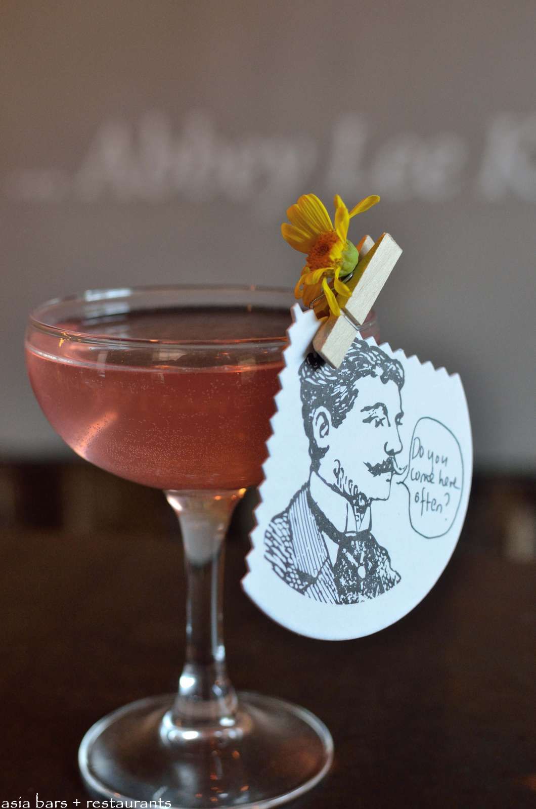 Seducing Miss Sharpe- Absolut citrus vodka, Wybrowa rose vodka, peach liqueur, vanilla, cranberry, citrus kiss, flowers and a note.