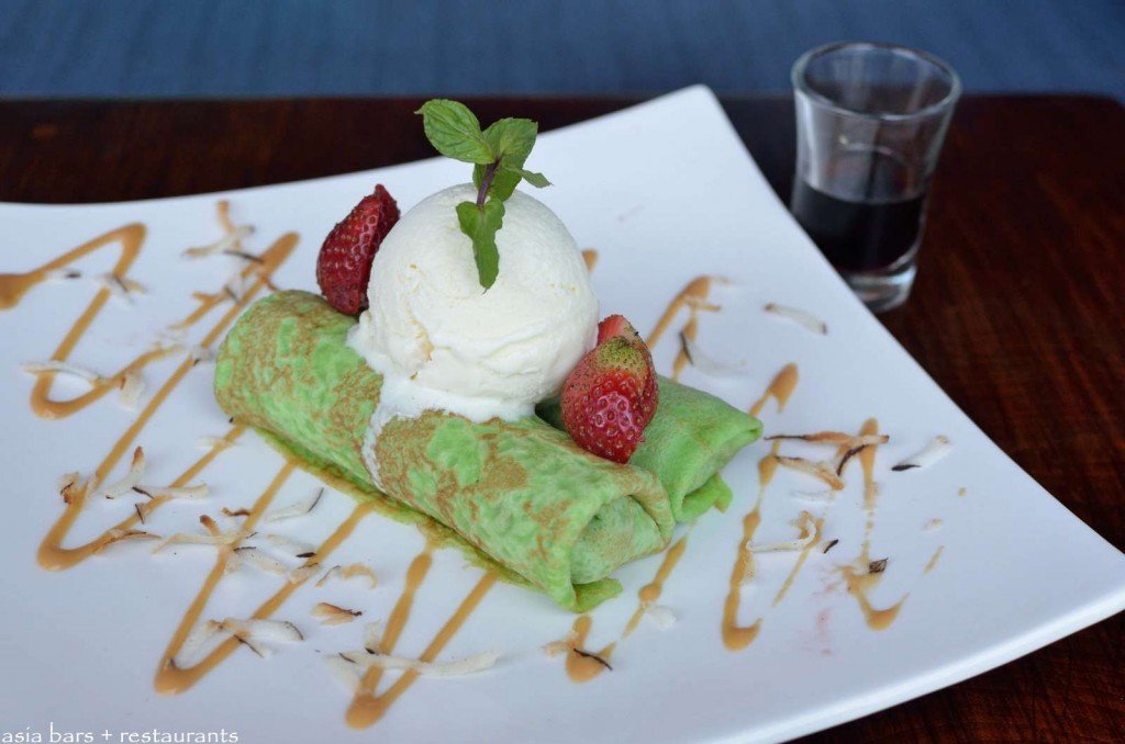 DADAR GULING- Balinese crepe, roasted coconut filling, coffee liquor, vanilla ice cream.