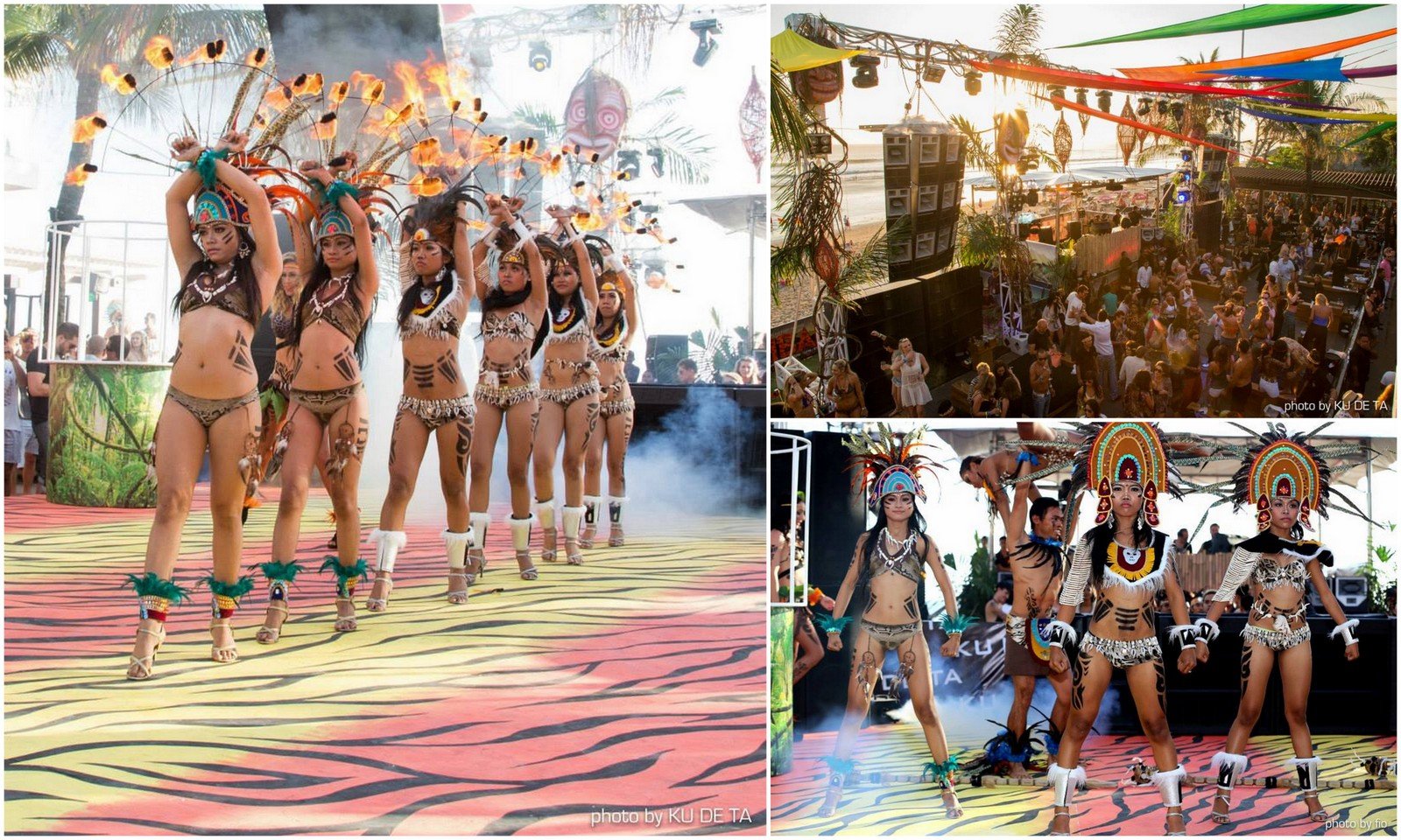 KU DE TA are internationally renowned for their themed parties that draw massive crowds of revelers- with the annual highlight being the August “party season”. Some images above of the recent (August 2013) “KU DE TA Tribal Bikini Party” ( Images courtesy of KU DE TA)