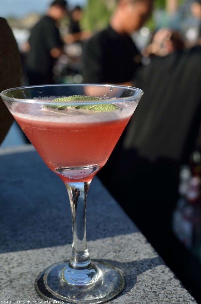 Front row at the Rock Bar- the best seats in the house! Facing west- the views take in the vastness of the Indian Ocean- and to the NW on the horizon- the largest volcano and sacred mountain of Bali- Mount Agung.