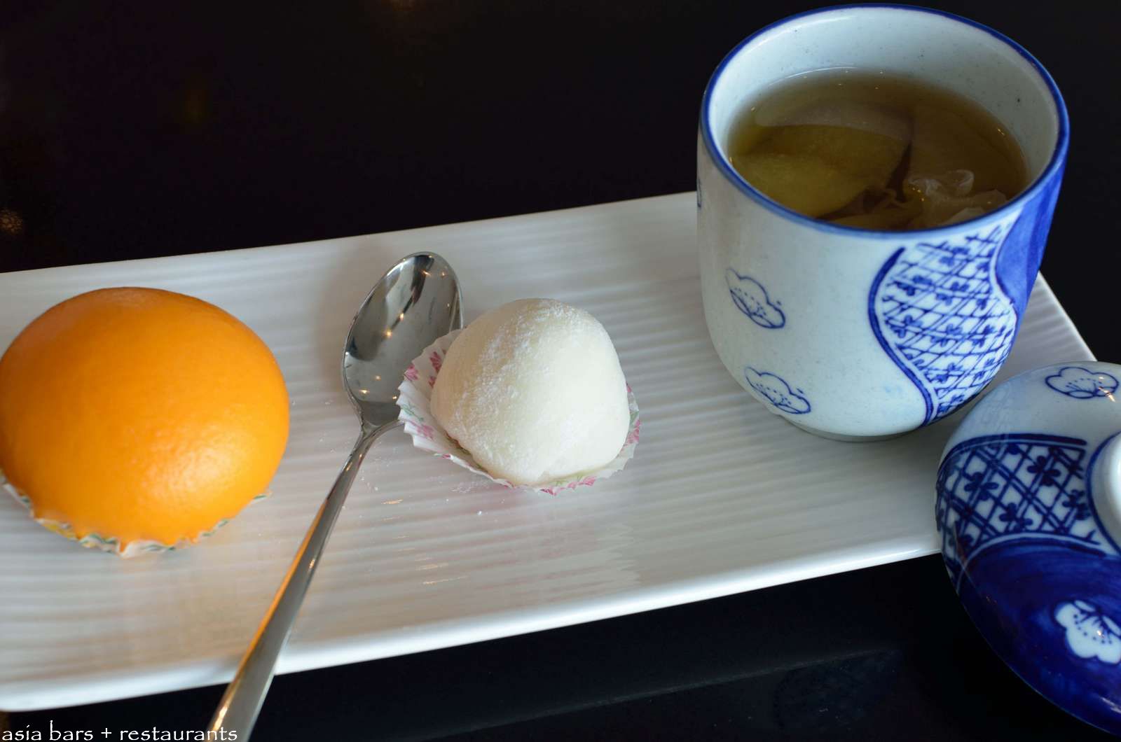 Steam custard bun with salted egg yolk / Chilled glutinous rice dumpling- with fresh cream stuffing / Double-boiled pear. Selections from dessert Dim Sum.