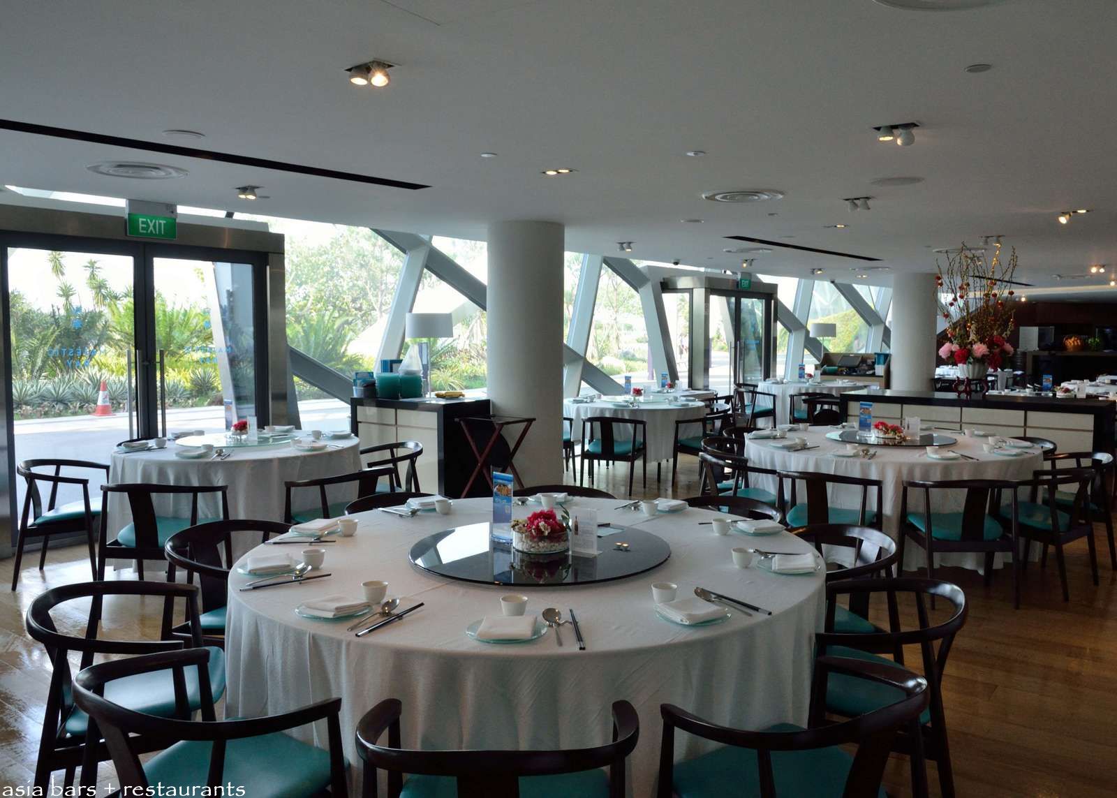 A refreshing addition to Singapore’s plethora of Chinese seafood restaurants, Majestic Bay Seafood Restaurant offers an appealing blend of traditional Chinese seafood dishes, complemented with modern interpretations and innovative dishes. Located within the impressive Gardens by the Bay development on Singapore’s reclaimed waterfront, the restaurant has been designed to sit comfortably within the context of its dramatic architectural environs. Majestic Bay represents the most recent addition to the highly regarded Chinese restaurants (Majestic and JING) currently owned and operated by renowned Singaporean chef Yong Bing Ngen, in collaboration with the Unlisted Collection group of local hotelier and restaurateur Loh Lik Peng. Opened in late 2012, Majestic Bay entices diners with its wonderful Chinese seafood cuisine, served at approachable prices, in a delightful setting that exudes a relaxed and uncluttered contemporary chic. In keeping with its Chinese dining heritage, the restaurant welcomes groups of families and friends to share and enjoy the superb fresh seafood ( and dim sum)- whilst immersed in the pleasant garden and waterfront setting of the unique Flower Dome.
