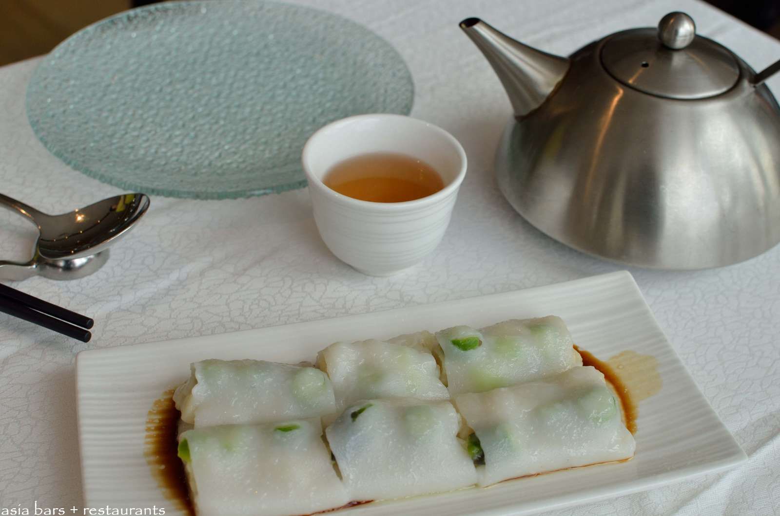 Steamed Rice Roll with scallops & asparagus. Dim Sum menu selection