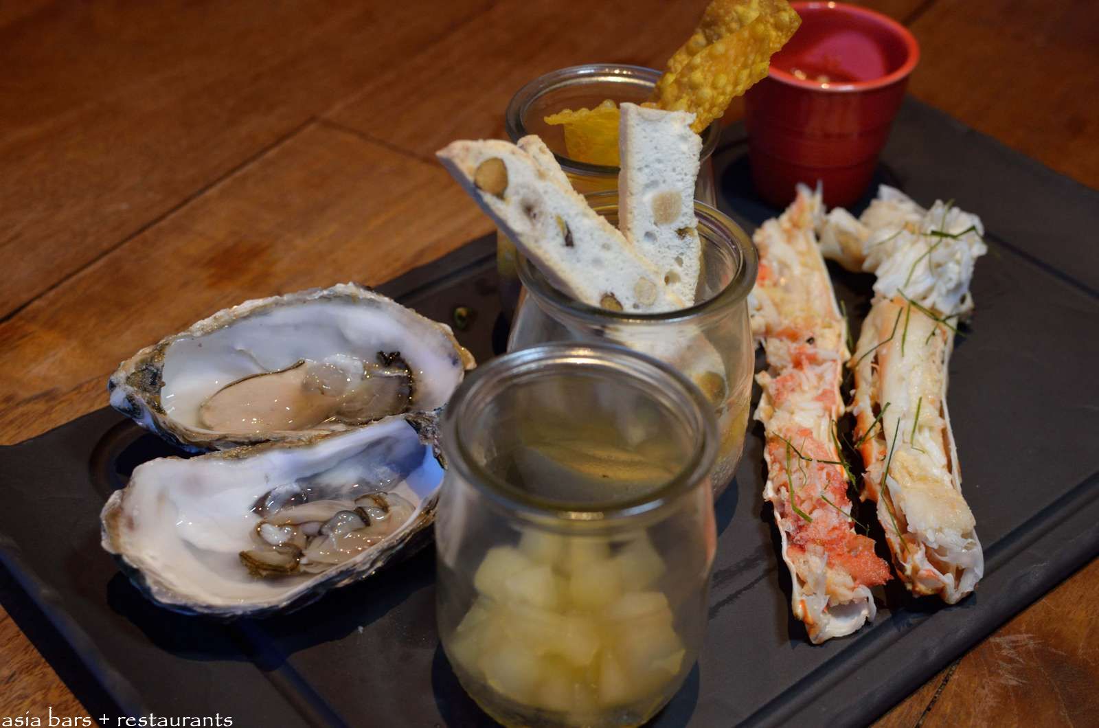 Cold Platter- Foie Gras Terrine; Fresh Oysters; King Crab, lemon, Thai seafood sauce, lime leaf; Tuna Tartare, coriander, mango sesame, lime and ginger.