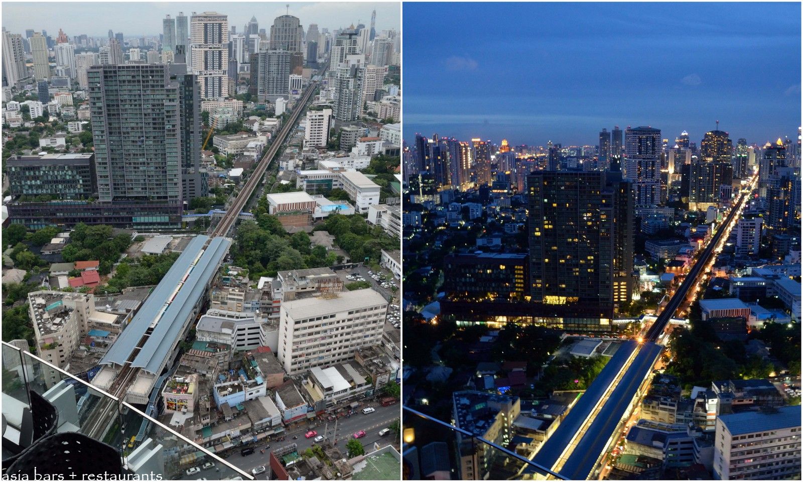 Spectacular day and night vistas- looking west down Sukhumvit Road- with Thonglor BTS station in foreground.