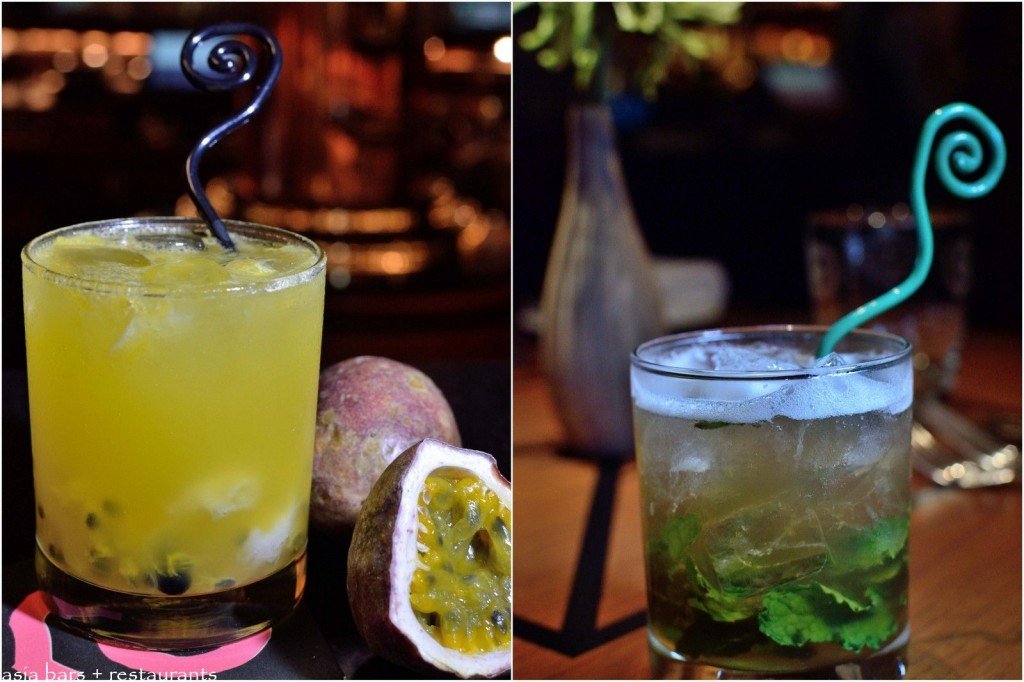 (L) Passion Fruit Batida- vibrant flavors of Asian tropical fruit and South America’s spirit- a dynamic mix of sweet and sour flavors- organic passion fruit is a perfect match for the strong molasses-based cachaça spirit.