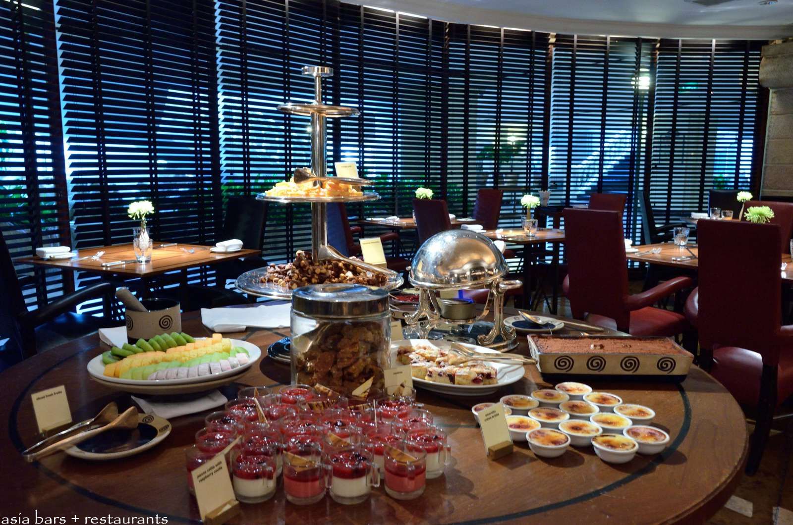 Dessert buffet- delicacies include classic Italian sweets such as Tiramisu, and Panna Cotta with raspberry coulis; plus fresh tropical fruits, home -made chocolates, amaretto creme brulee, and more.